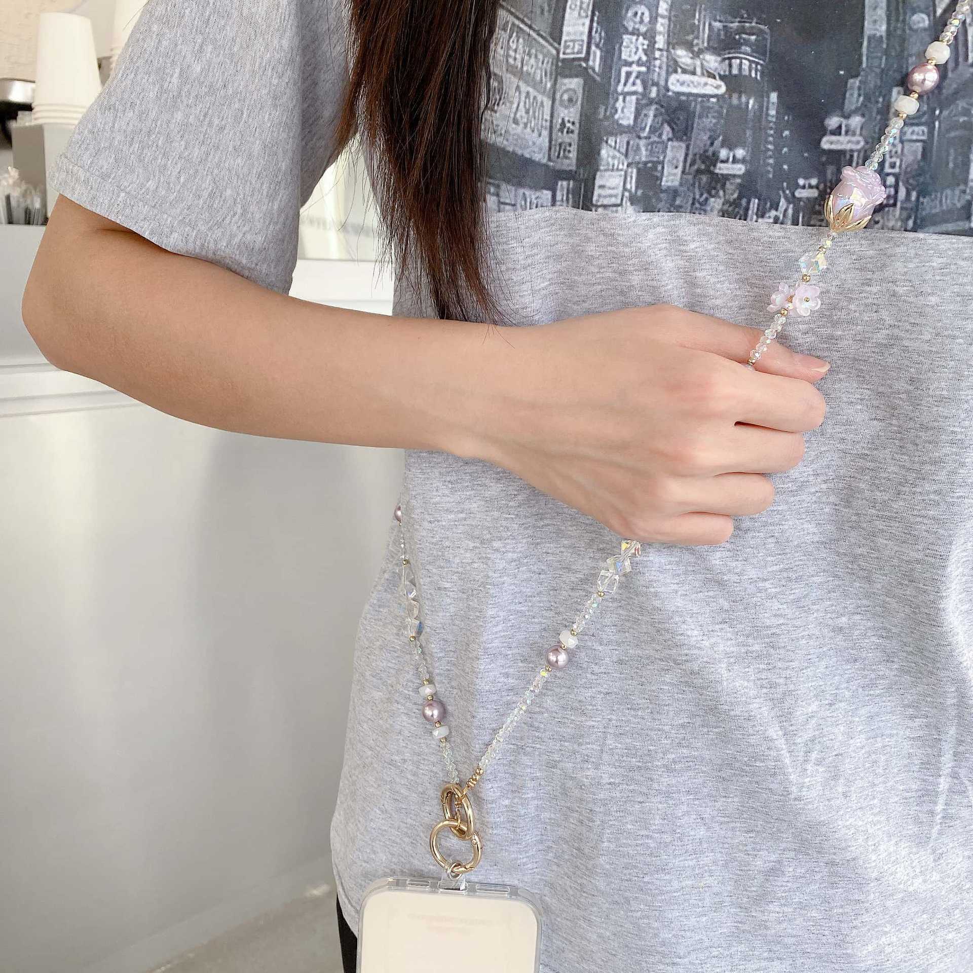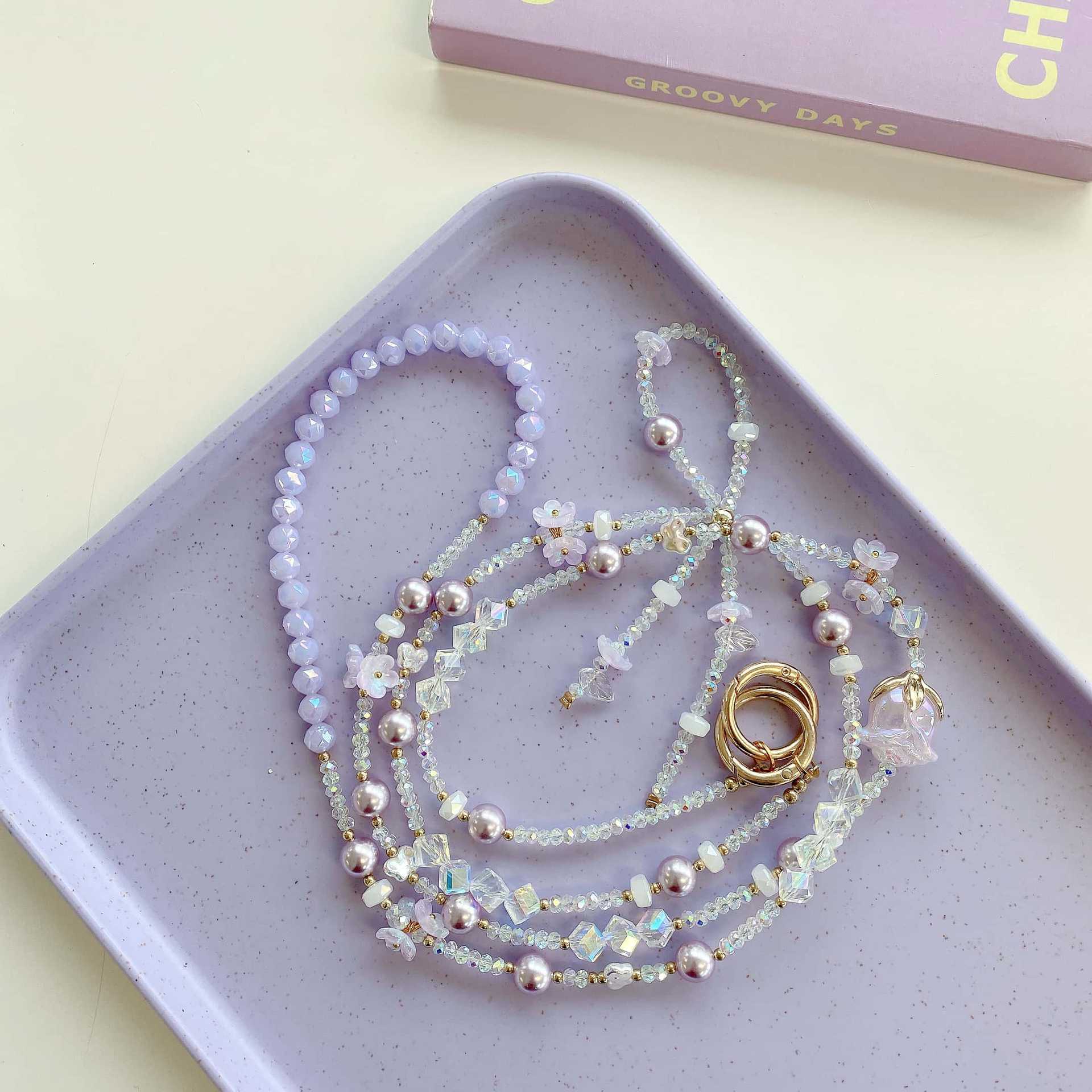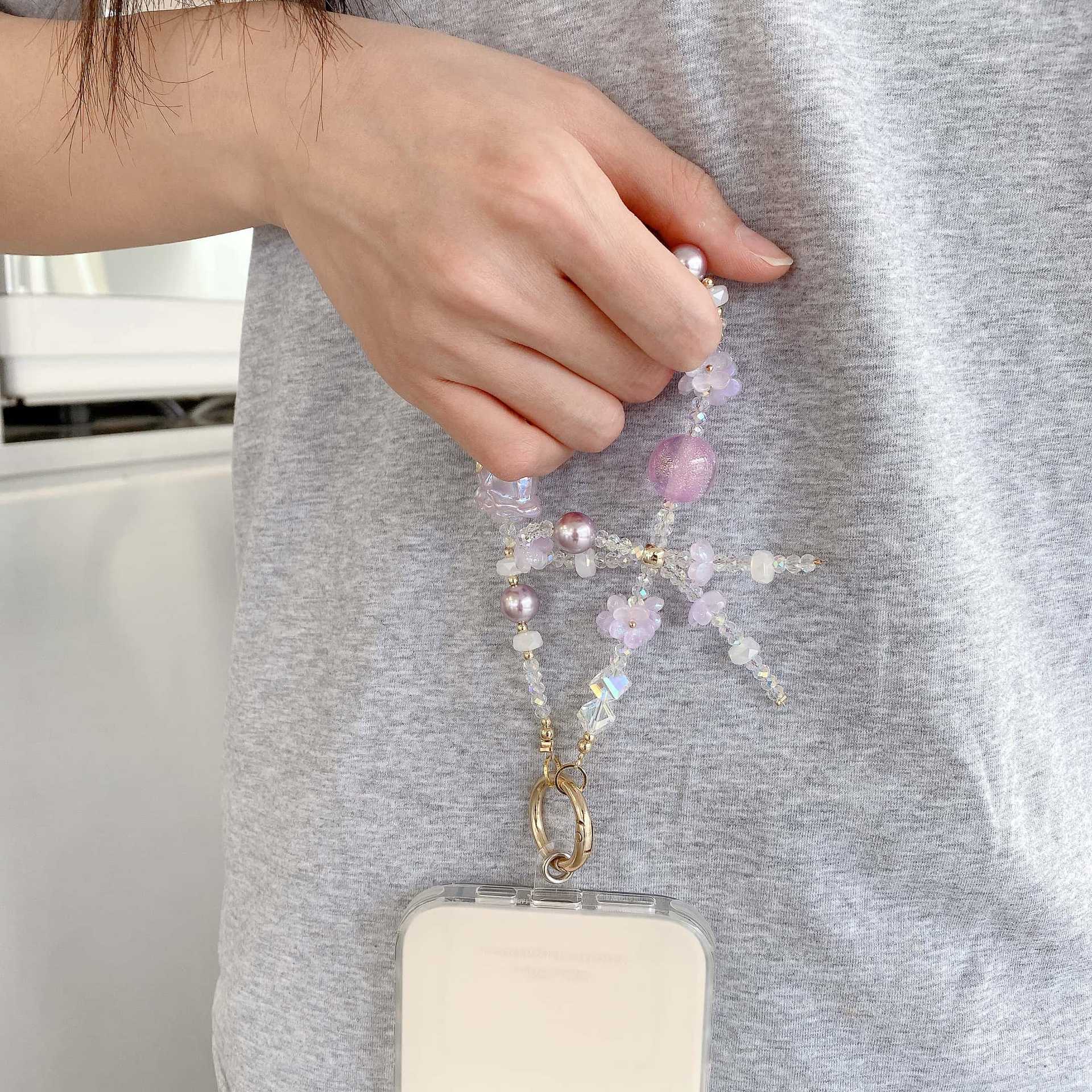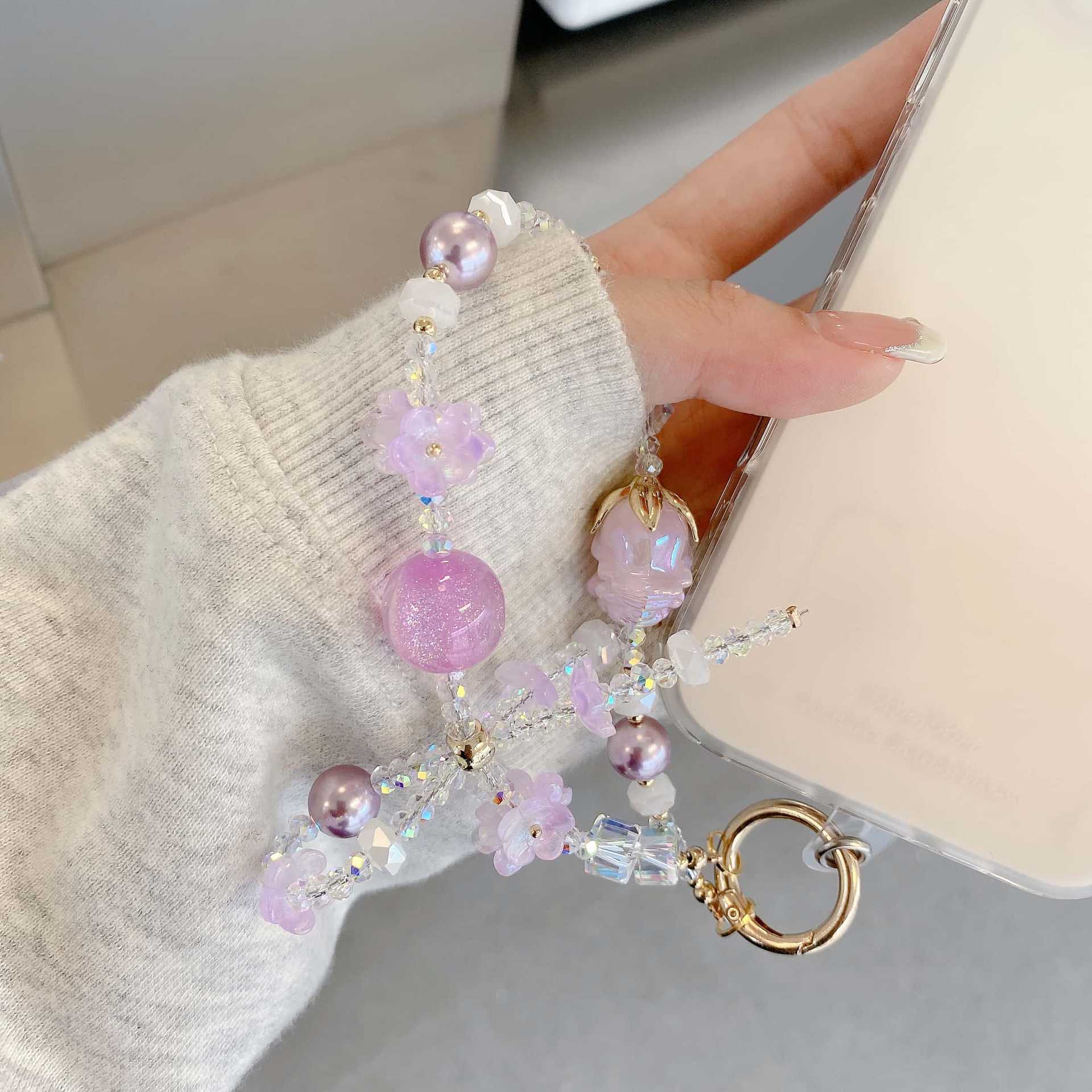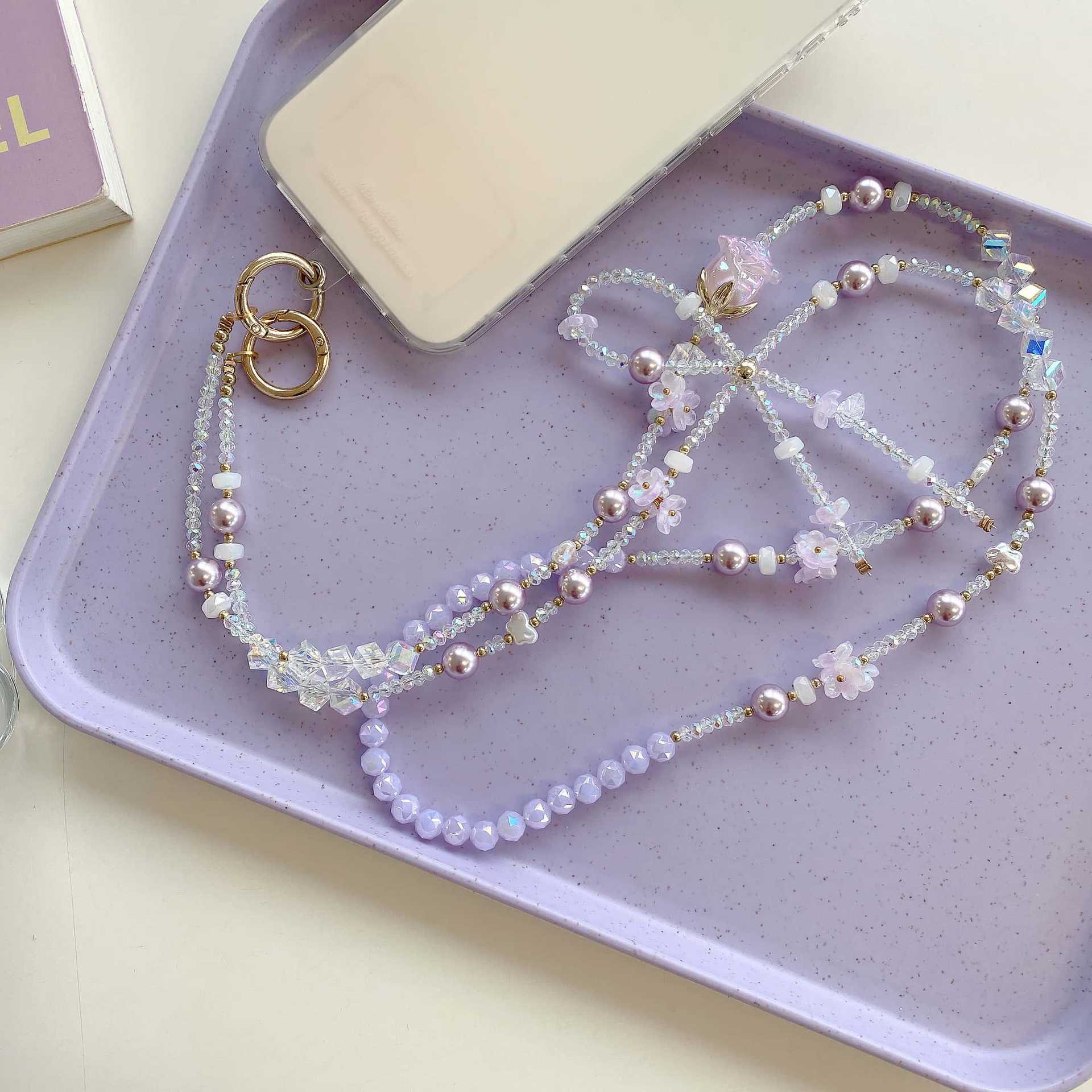 Cadena de teléfono móvil de alta gama hecha a mano boutique, tulipán femenino, cadena larga púrpura, cordón de teléfono móvil de moda, colgante de mensajero largo
