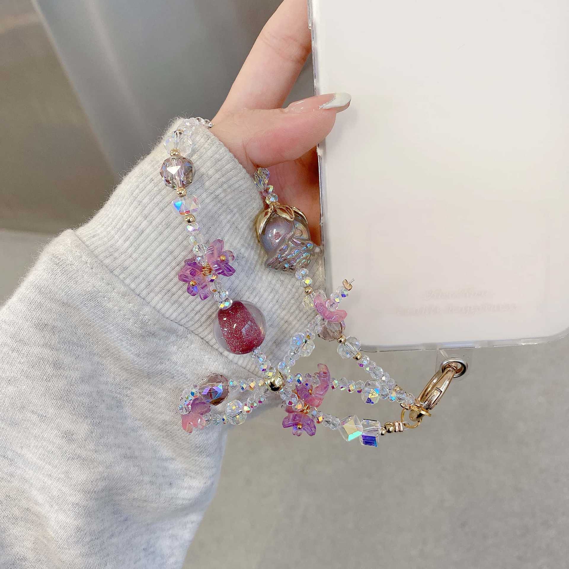 Boutique hecho a mano de alta gama teléfono móvil cadena colgante mujer tulipán sueño púrpura cadena larga moda teléfono móvil cordón largo mensajero colgante