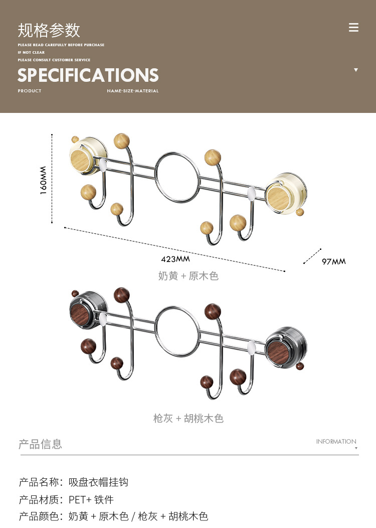 | Color | Color de la nuez (6 ganchos), color de la madera cruda (6 ganchos) |