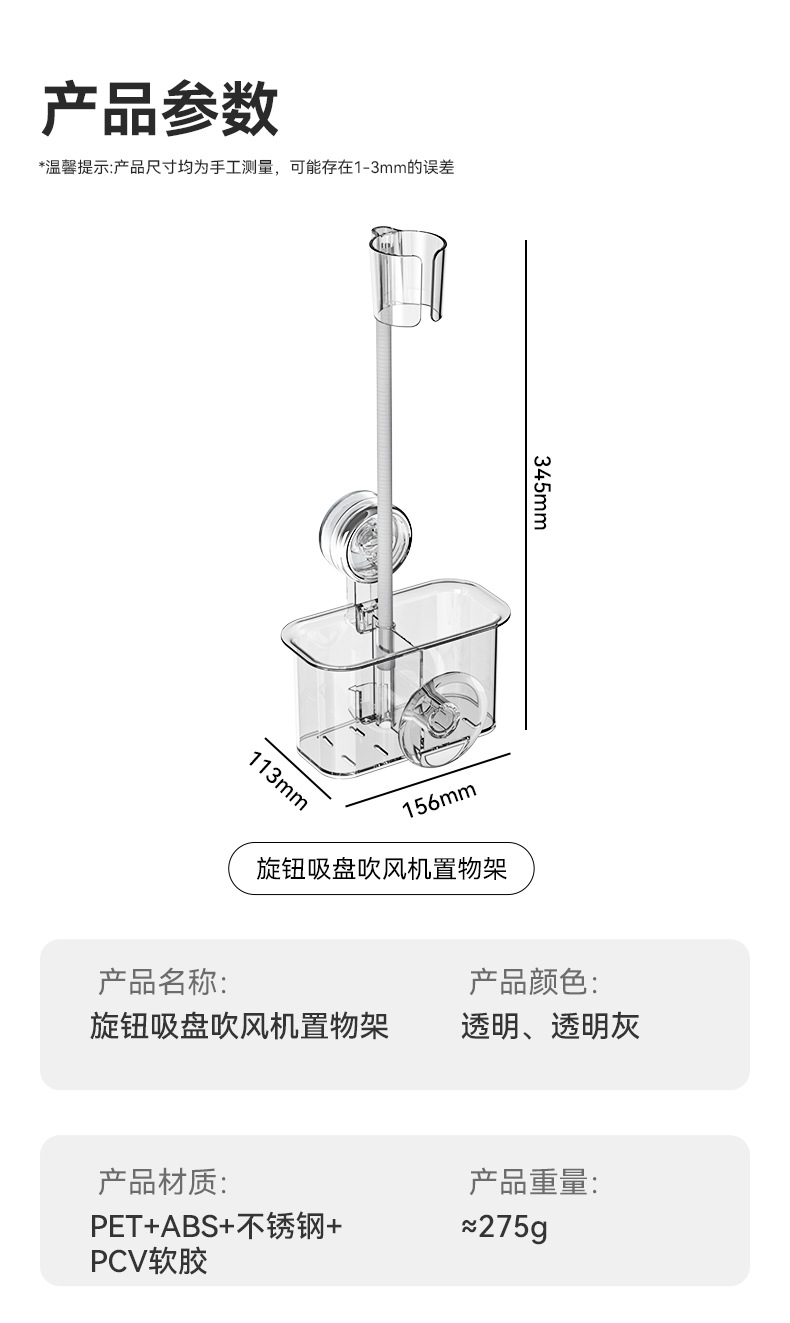 | Tamaño | Estante para secador de pelo con ventosa (transparente),Estante para secador de pelo con ventosa (transparente a gris) |