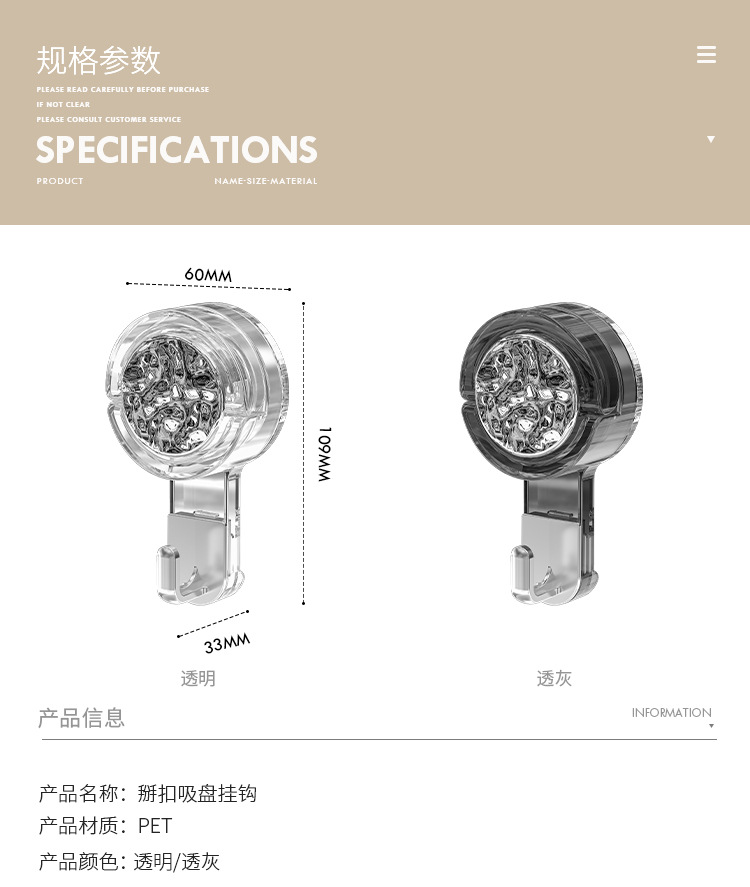 | Categoría del producto | Gancho de ventosa |