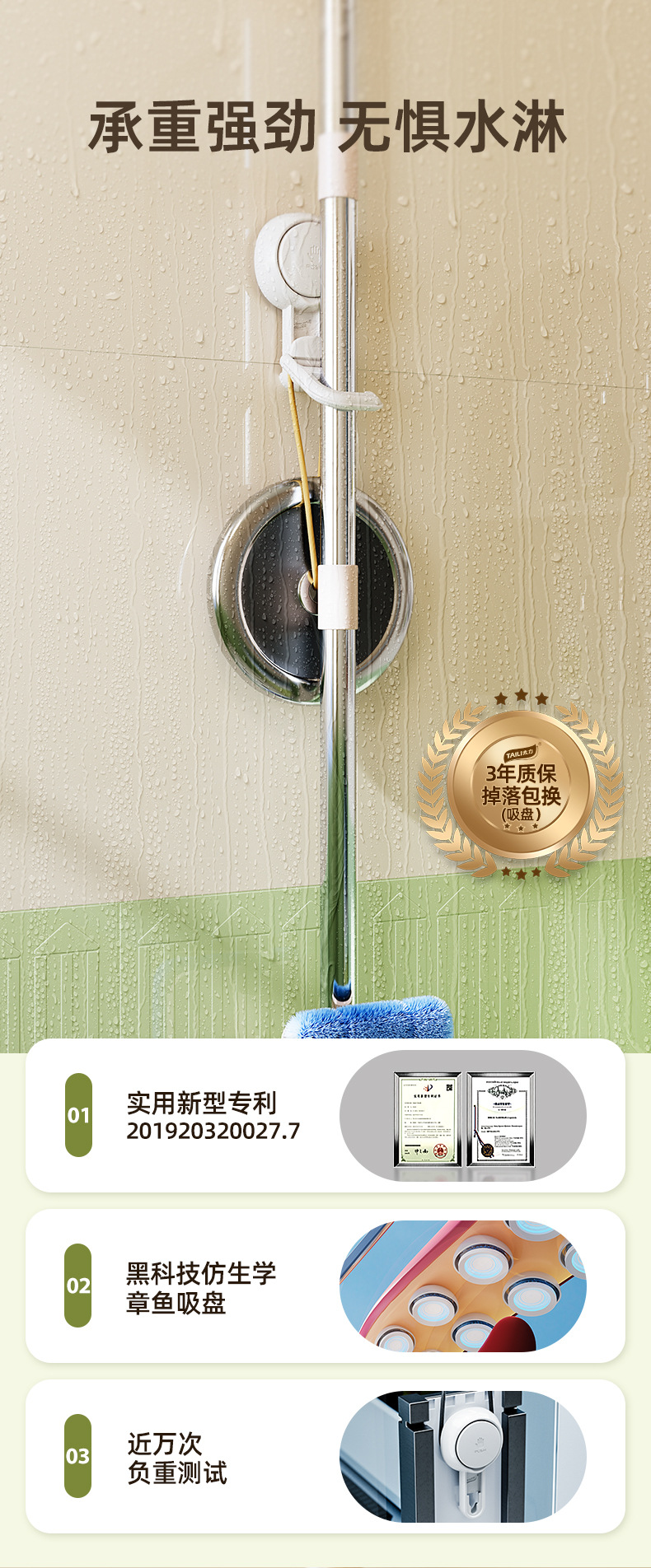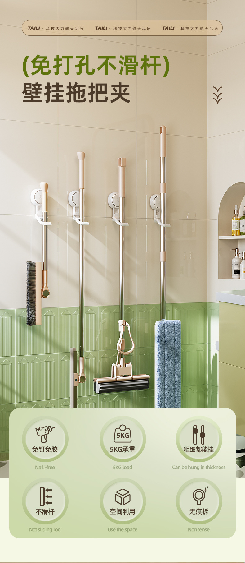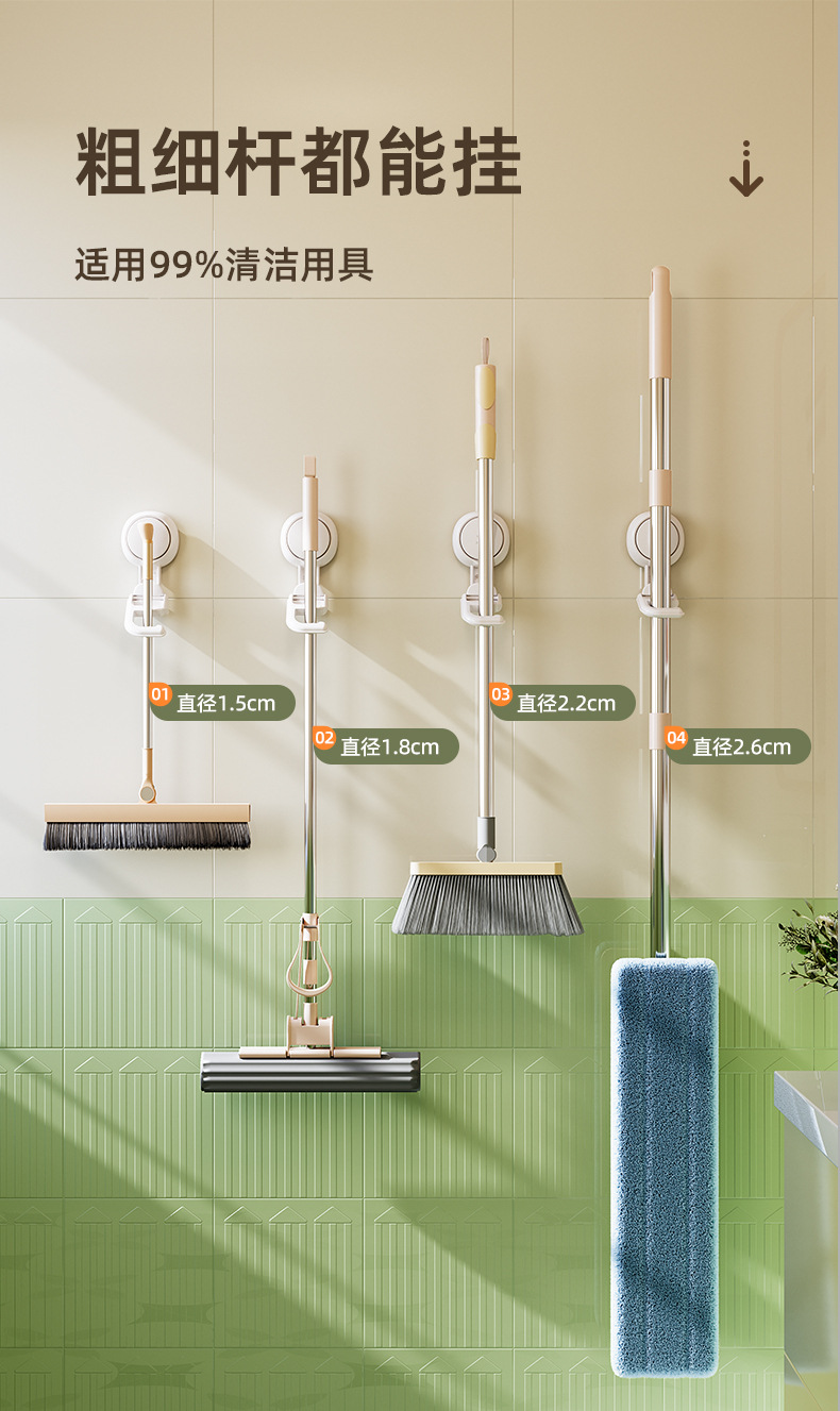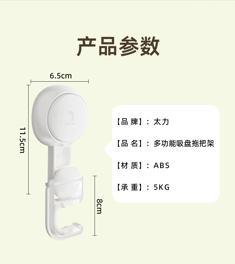 品名:太力-白色-多功能吸盘拖把架