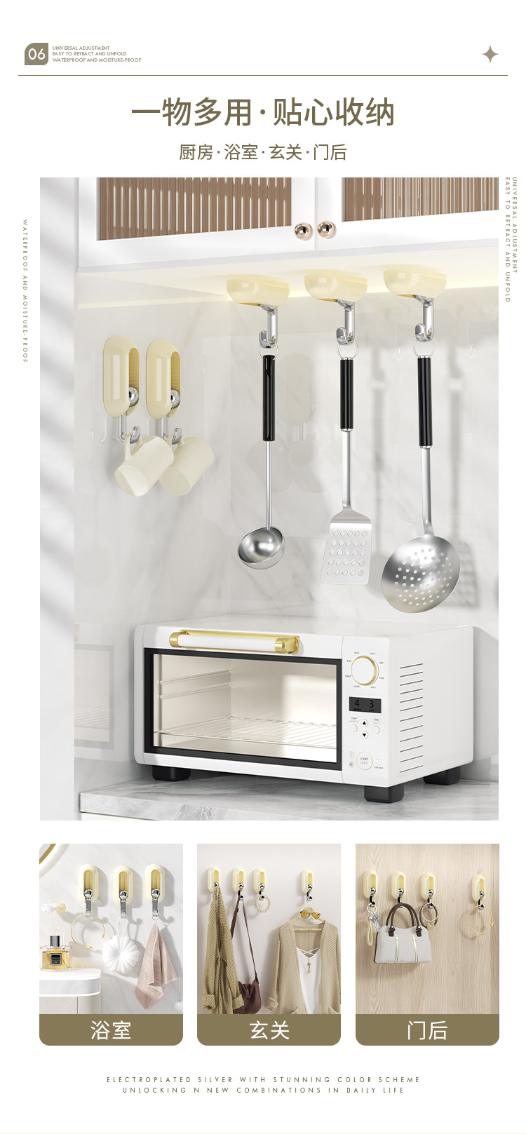 | color | Gancho universal - Plata cremosa [Paquete de 4],Gancho universal plateado [paquete de 4],Gancho universal platino [paquete de 4],Gancho universal todo negro [paquete de 4],Gancho universal negro y plateado [paquete de 4] |