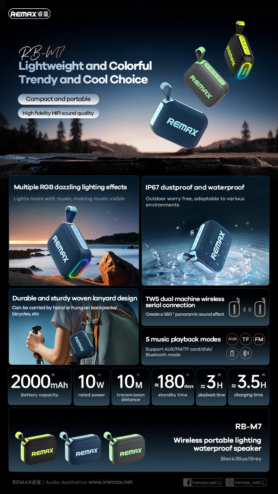 | Color | RB-M7 Negro fantasma, RB-M7 gris estrellado, RB-M7 azul sombra de julio |