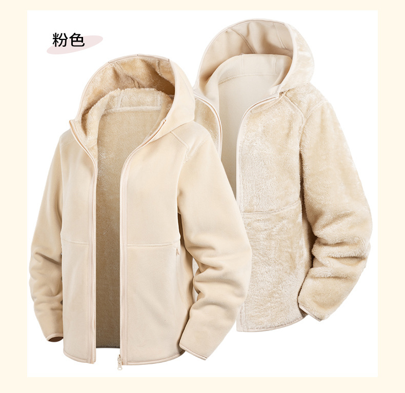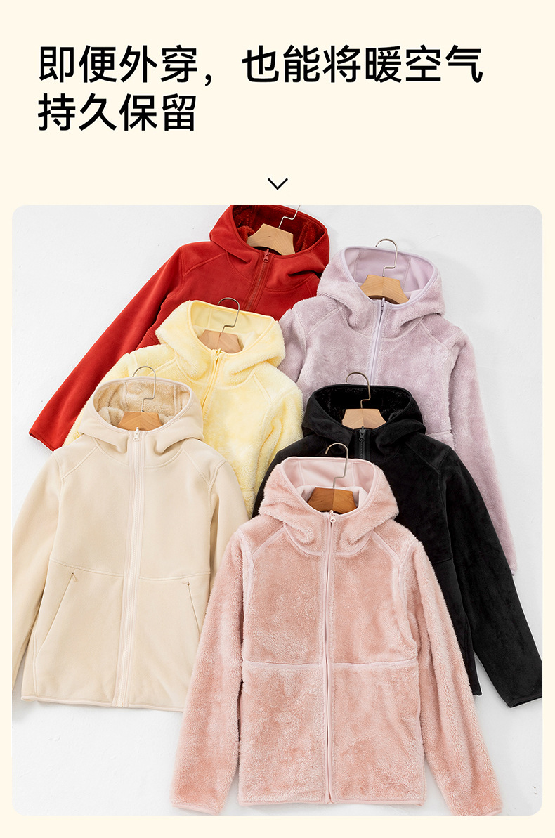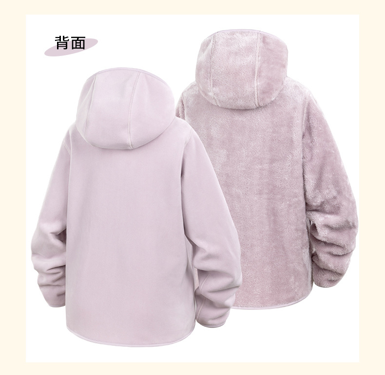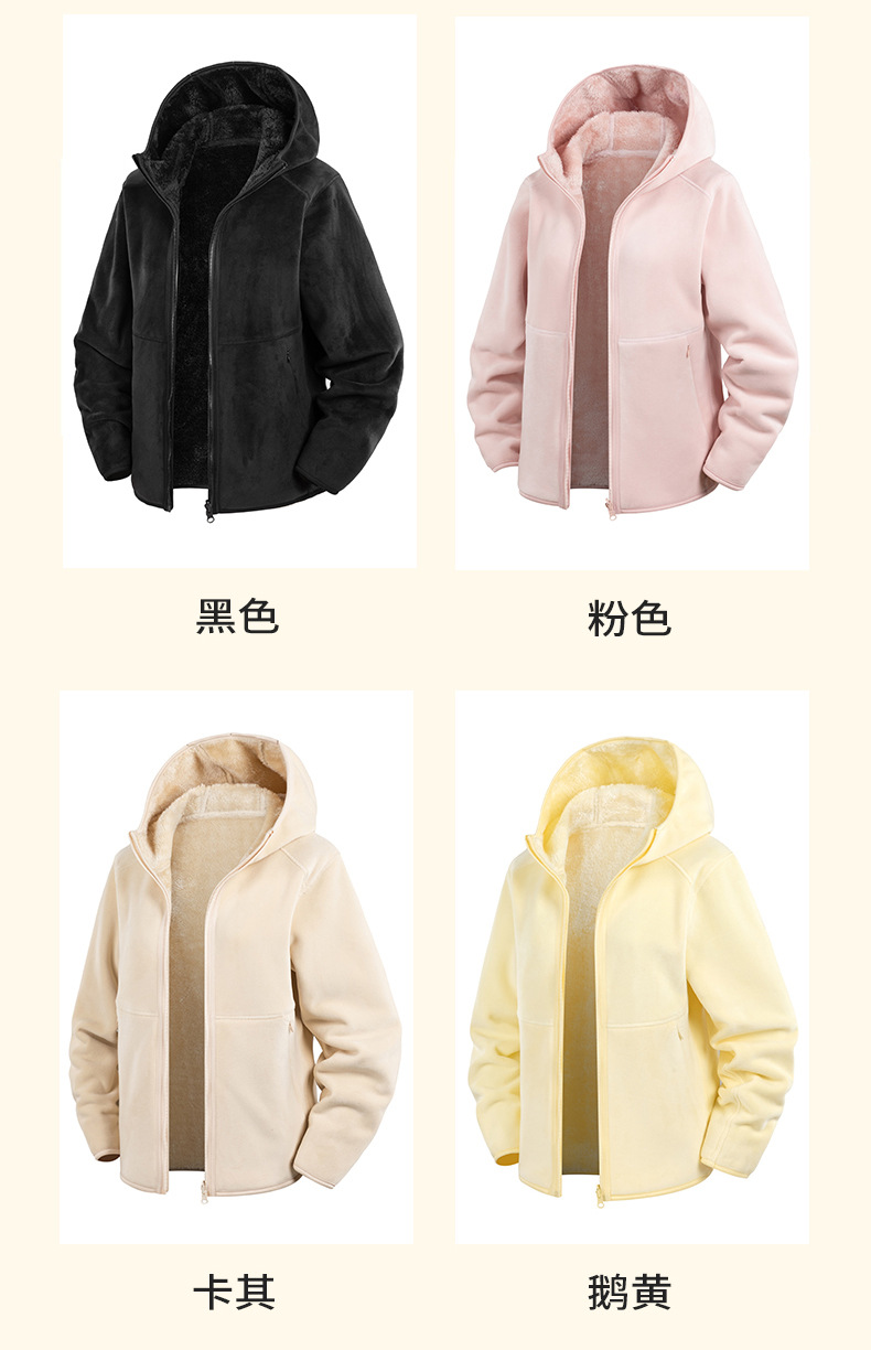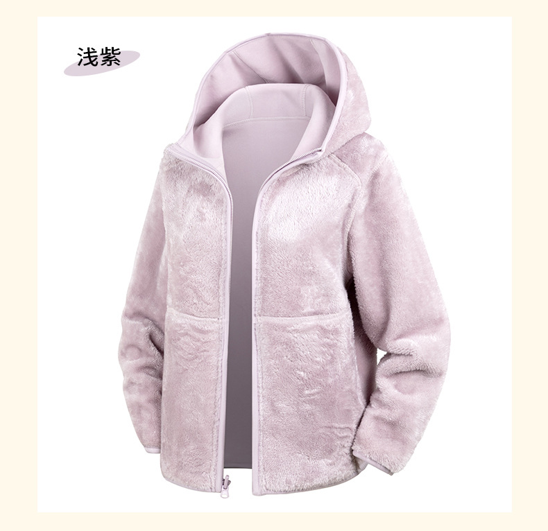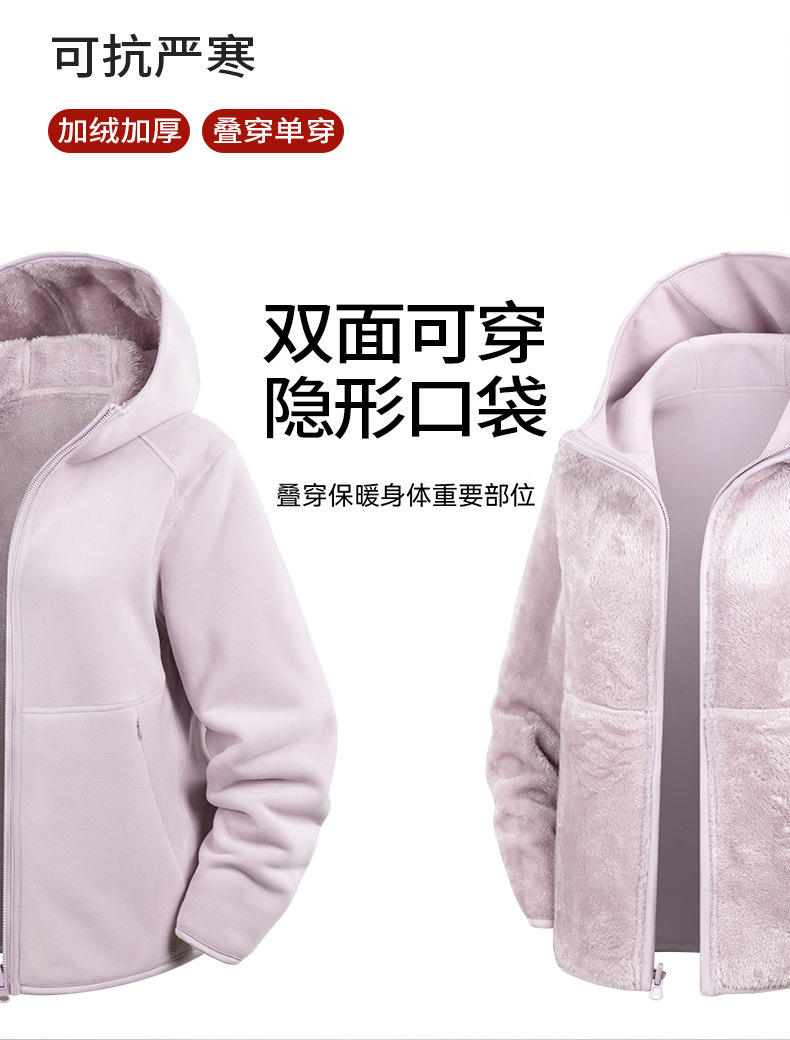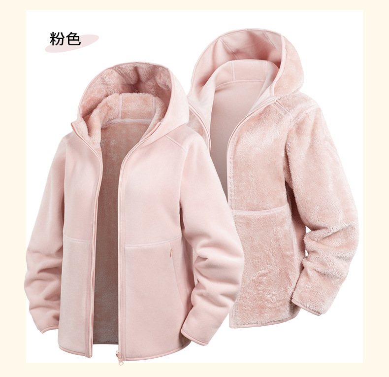 Doble cara de abrigo de terciopelo de mujer otoño y invierno calentamiento grueso agitado con capuchón cardigan de invierno para mujeres para correr y escalar montañas