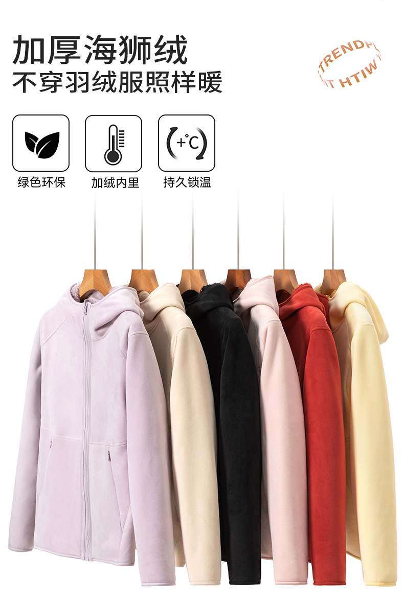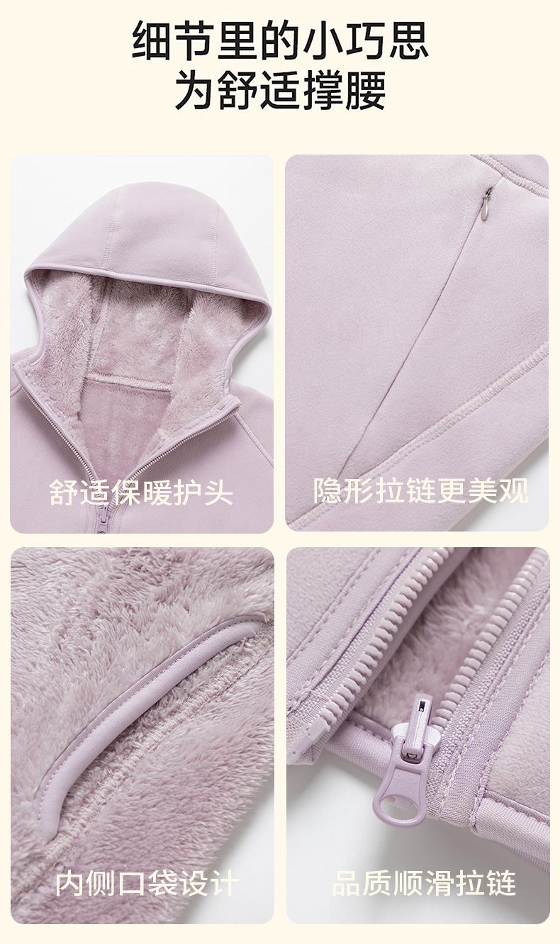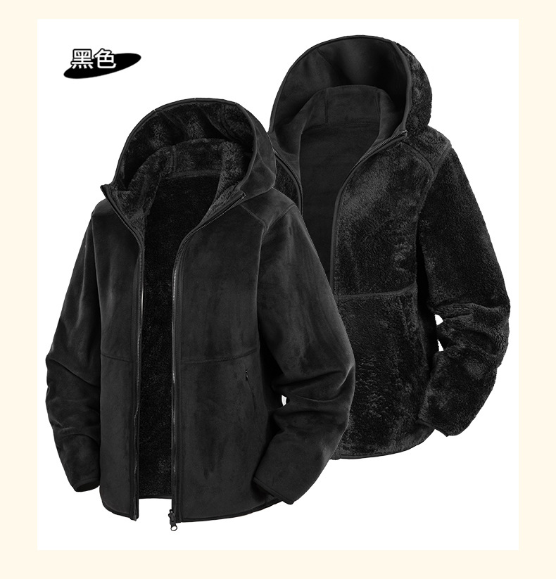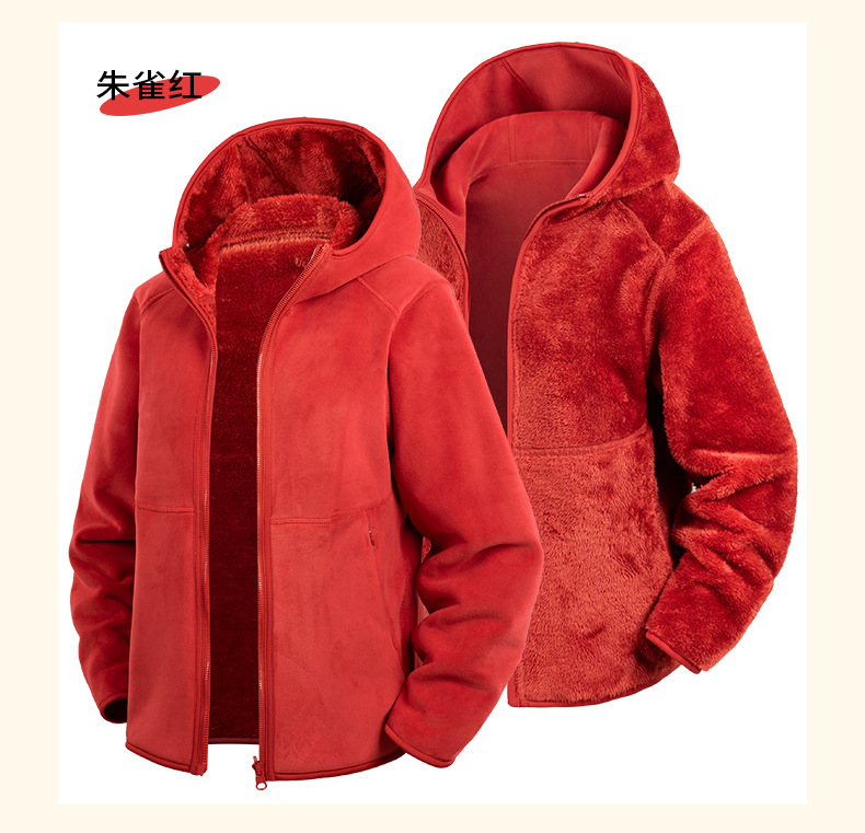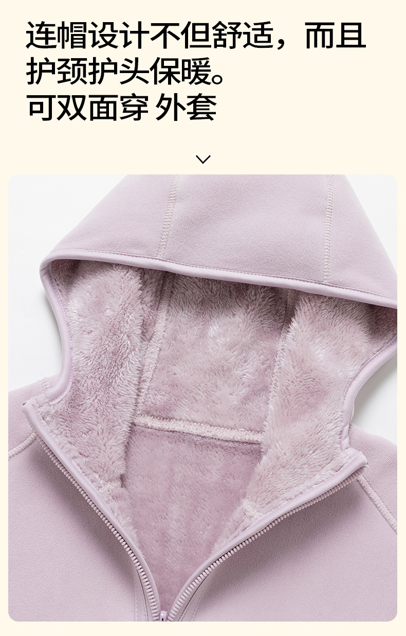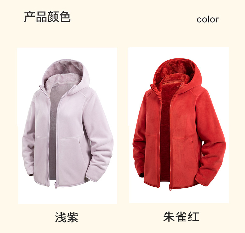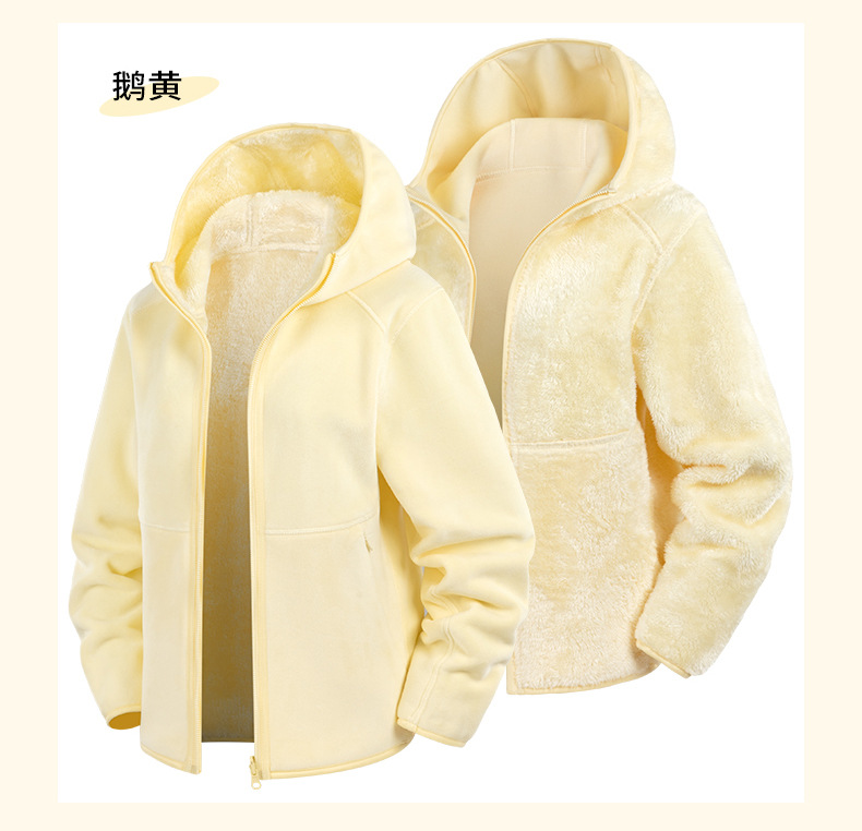 Doble cara de abrigo de terciopelo de mujer otoño y invierno calentamiento grueso agitado con capuchón cardigan de invierno para mujeres para correr y escalar montañas