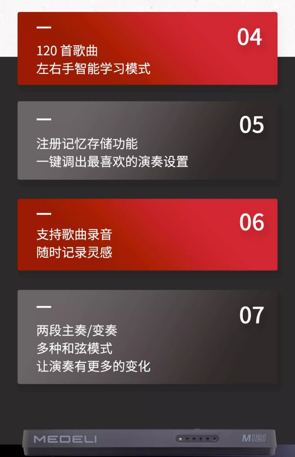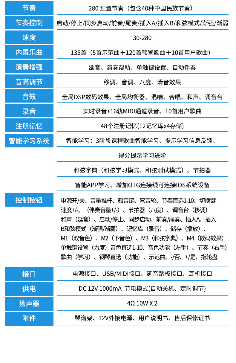 | Color | Piano electrónico m121 (estándar oficial), Piano electrónico m211 (estándar oficial), Piano electrónico a100s (estándar oficial), Piano electrónico MK - 402 (estándar oficial), Piano electrónico a850 (estándar oficial), Piano electrónico a900 (estándar oficial) |