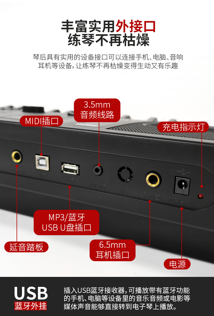 ● 88个键盘打击乐、88个LED键盘闪光灯