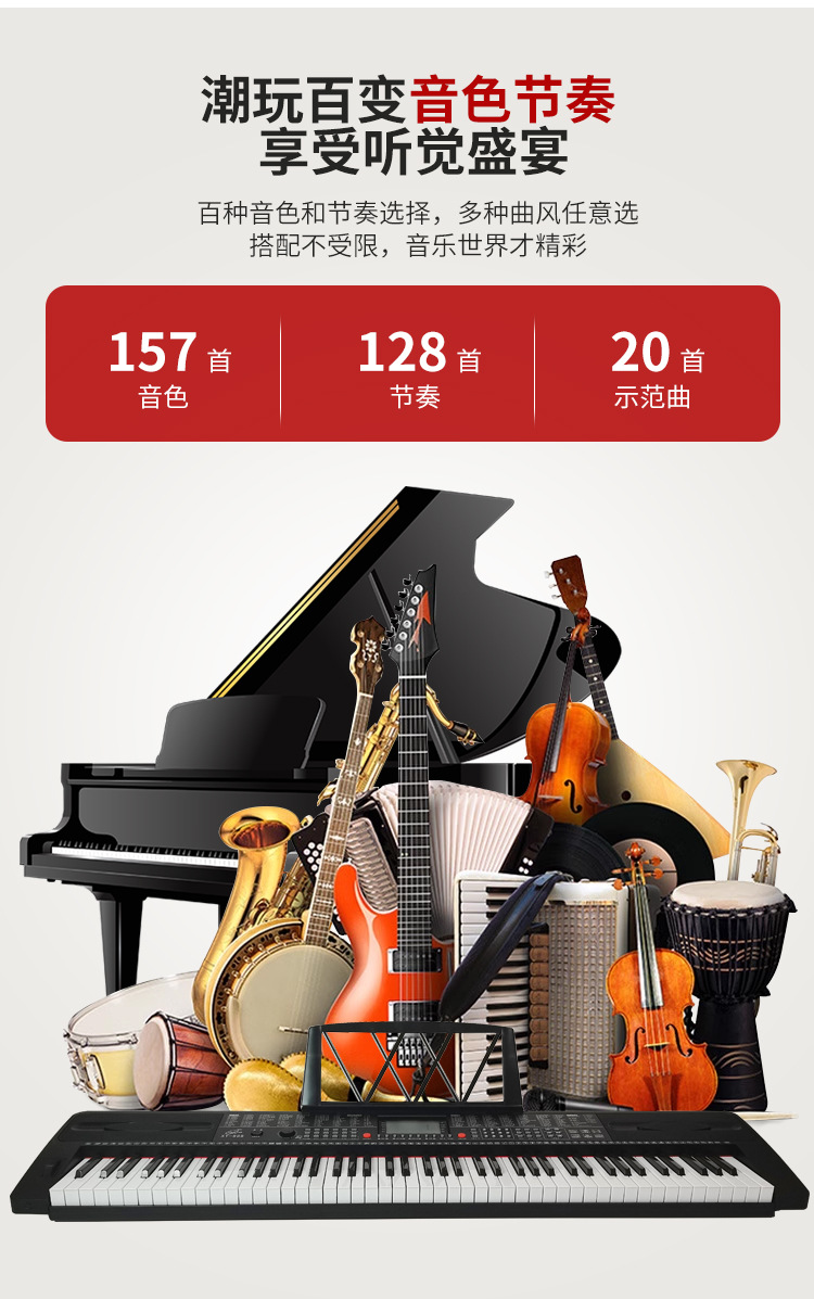 ● 157种音色、128种节奏、20首示范曲