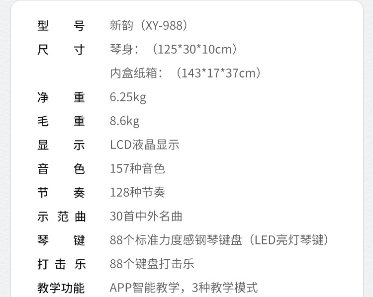 | Modelo | Piano portátil XY-988 |