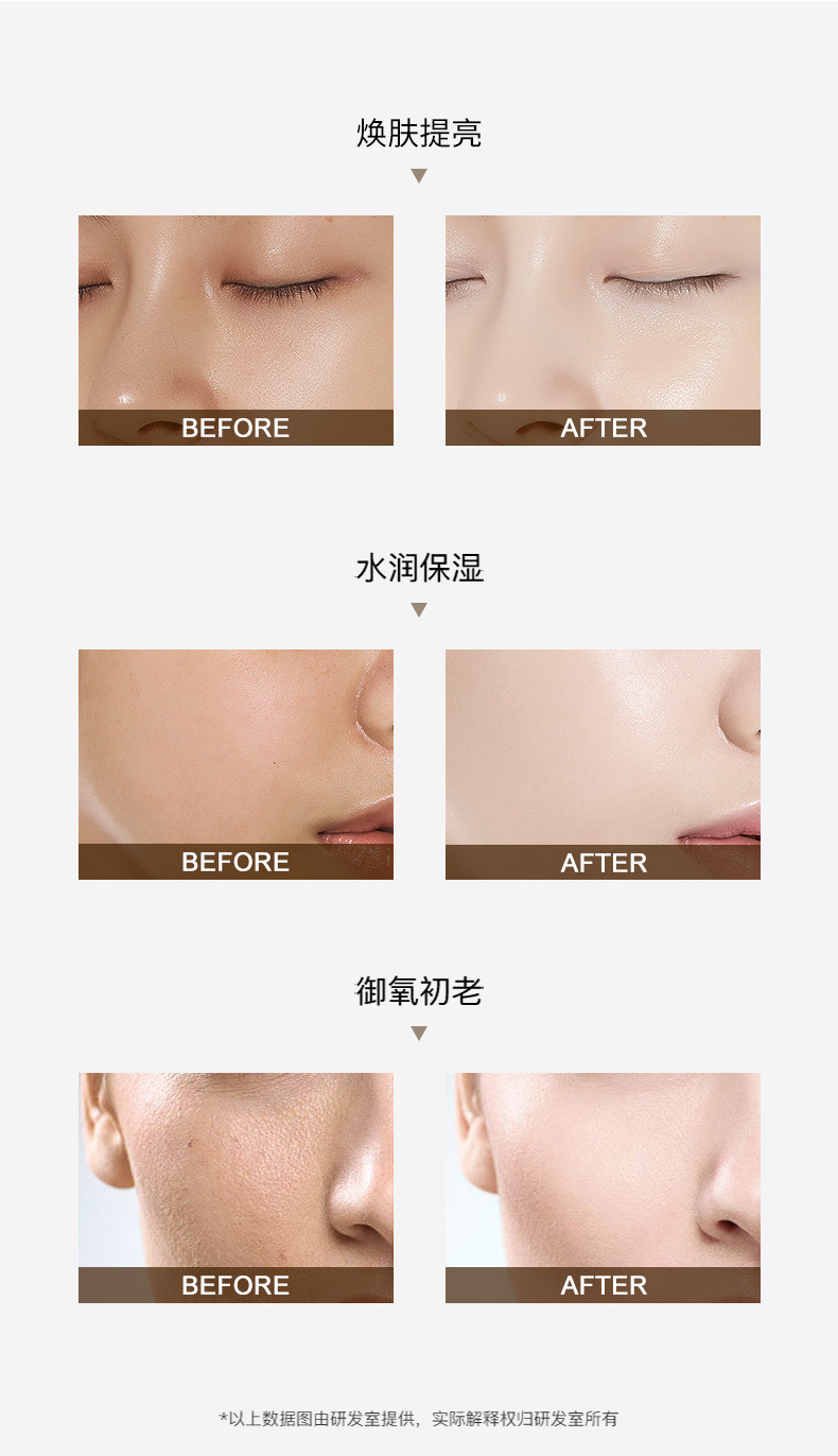 | Eficacia cosmética | Hidratante, hidratante, compacto y hidratante de la piel |