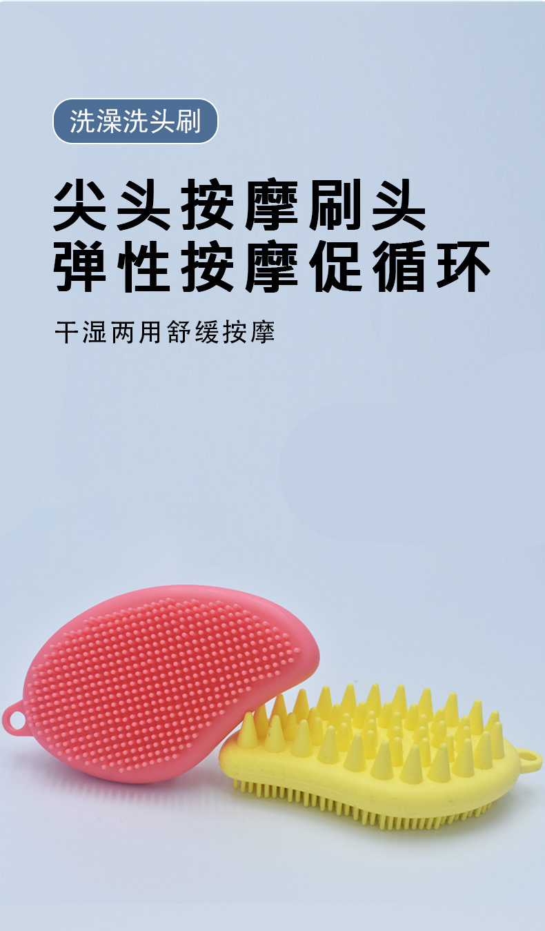 Amazon explosión cepillo de doble cara cepillo de masaje de dientes largos cepillo de limpieza de cuero cabelludo dos en uno cepillo de silicona cepillo de lavado de cabello