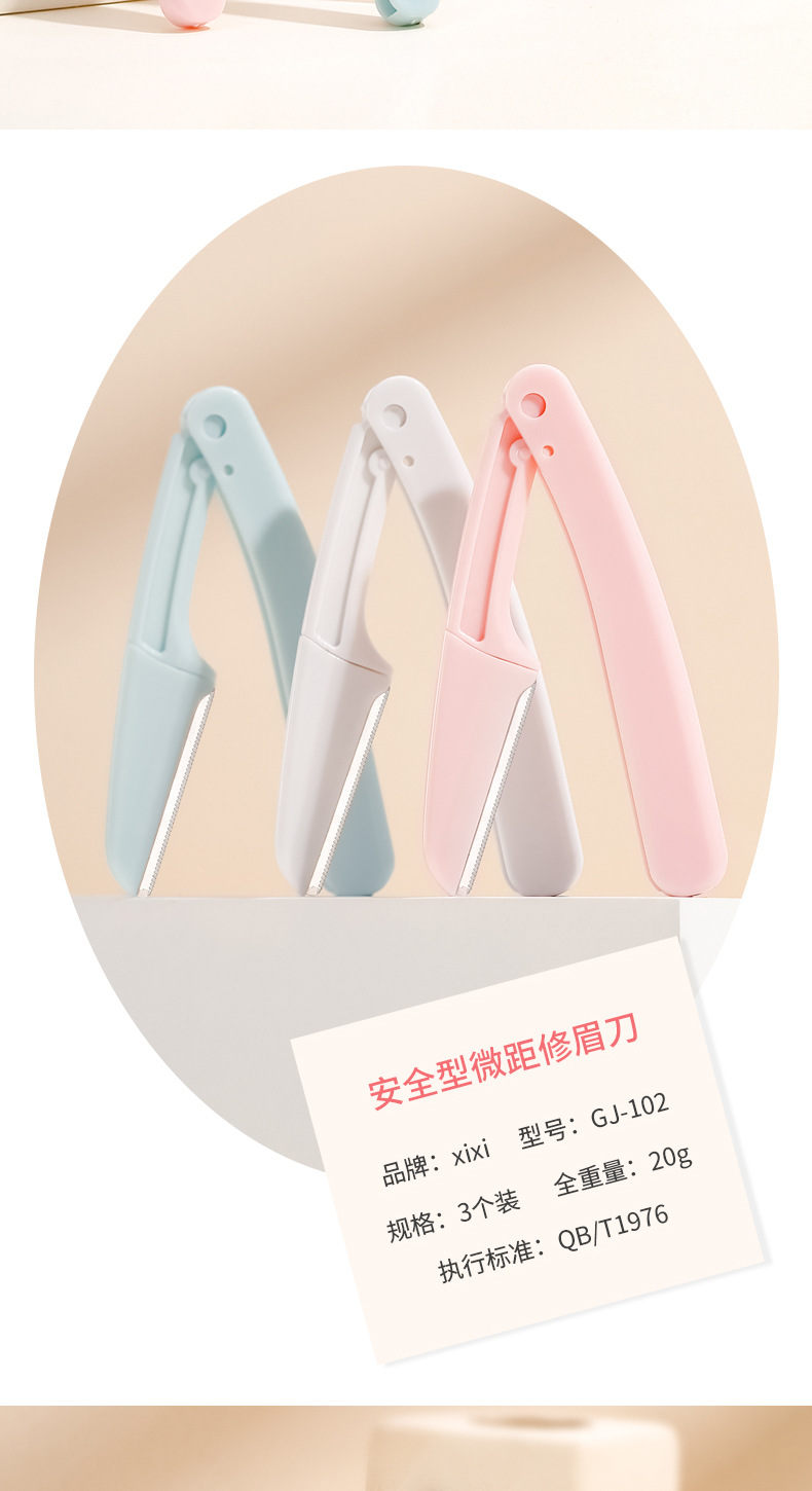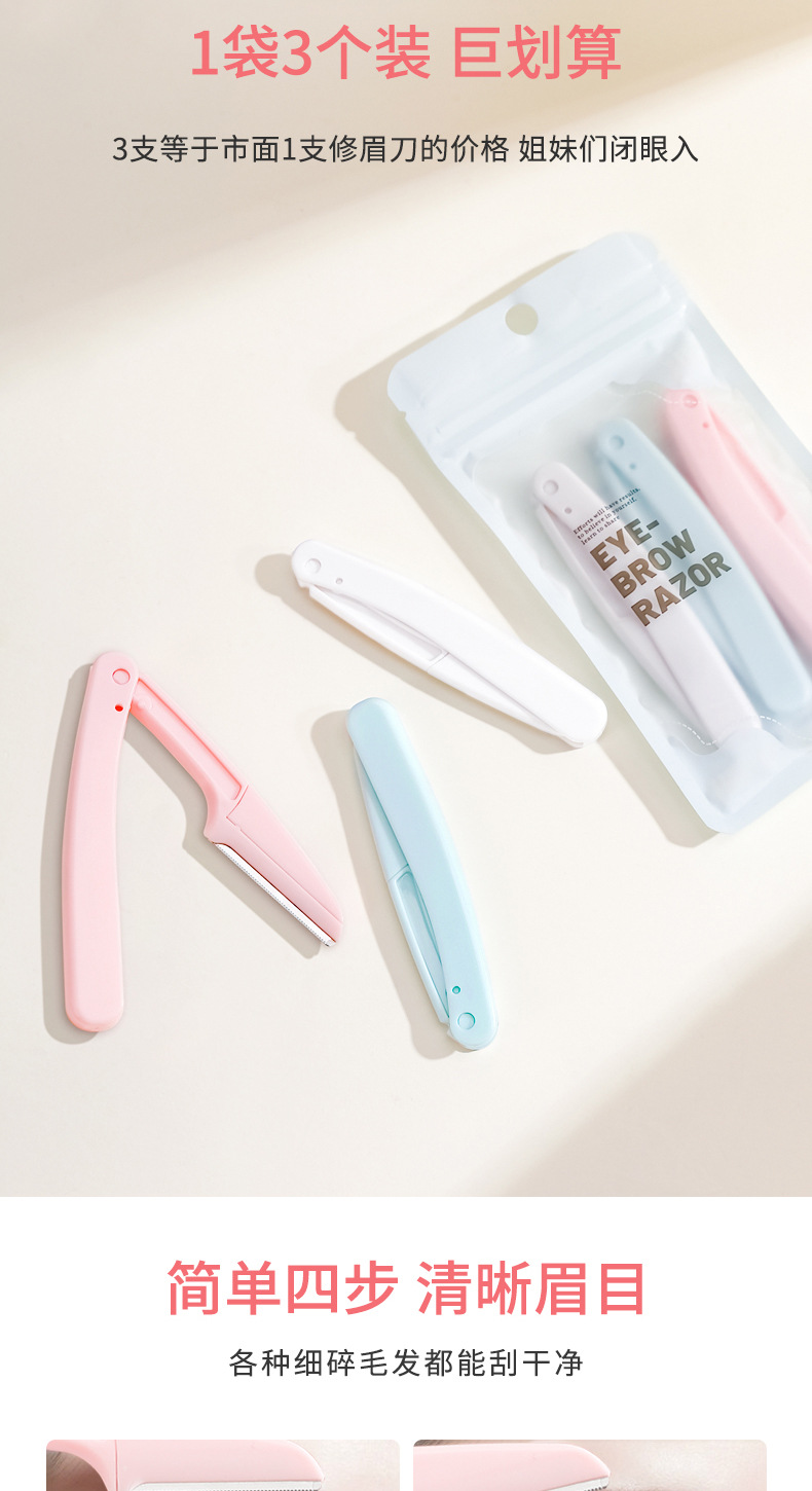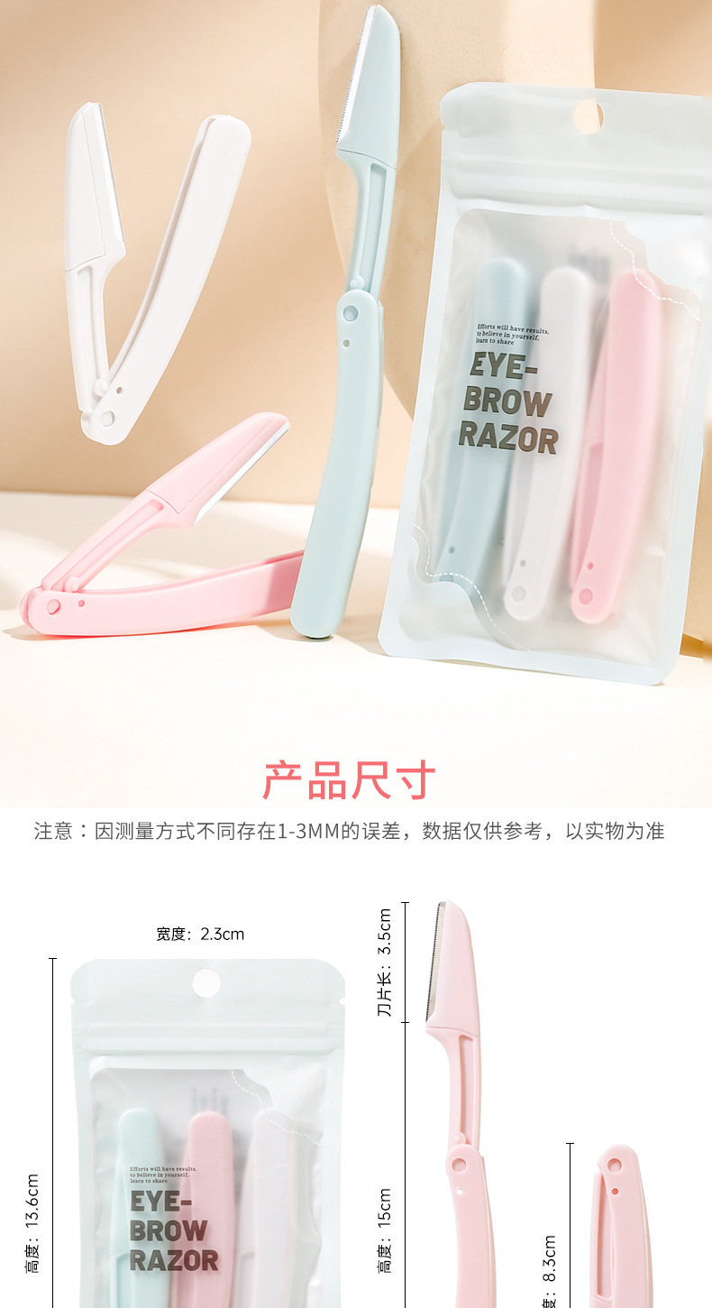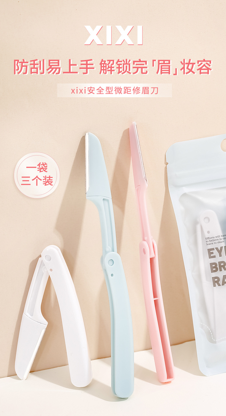 Xixi cuchillo de cejas plegable portátil novato seguro anti-raguñazo cuchillo de cejas de acero inoxidable tres paquetes