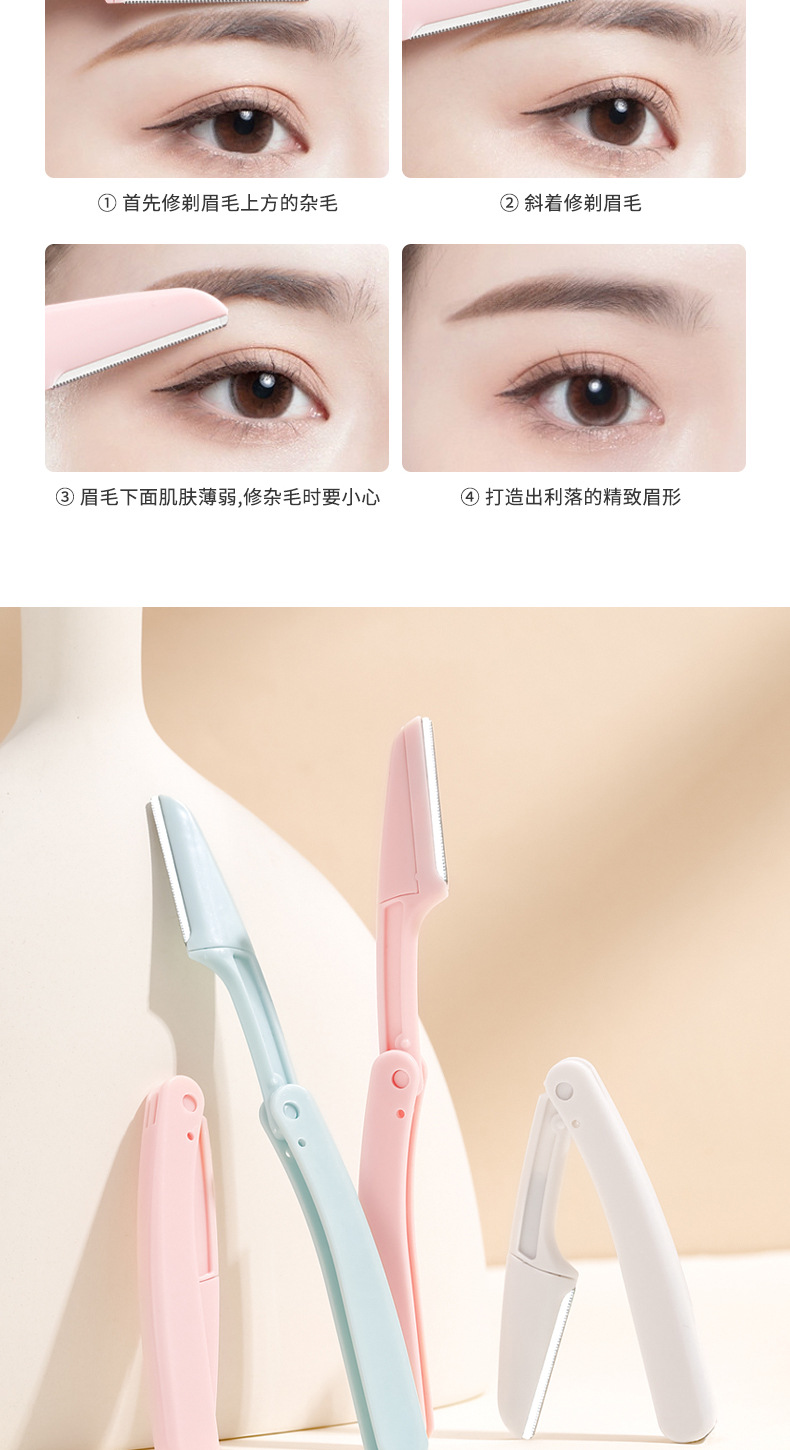Cuchillo de cejas de acero inoxidable, clip de cejas de moda, cuchillo de cejas plegable, cejas de cejas