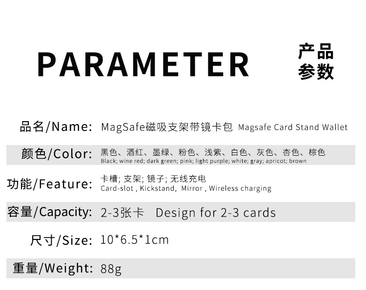 品名/Name:MagSafe磁吸支架带镜卡包 /Magsafe card stand wallet