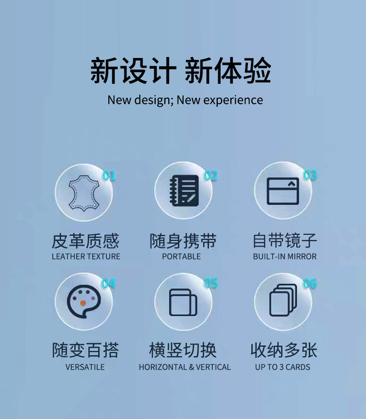 功能/Feature:卡槽;支架;镜子;无线充电功能 /Card-slot,Kickstand,Mirror ,Wireless charging
