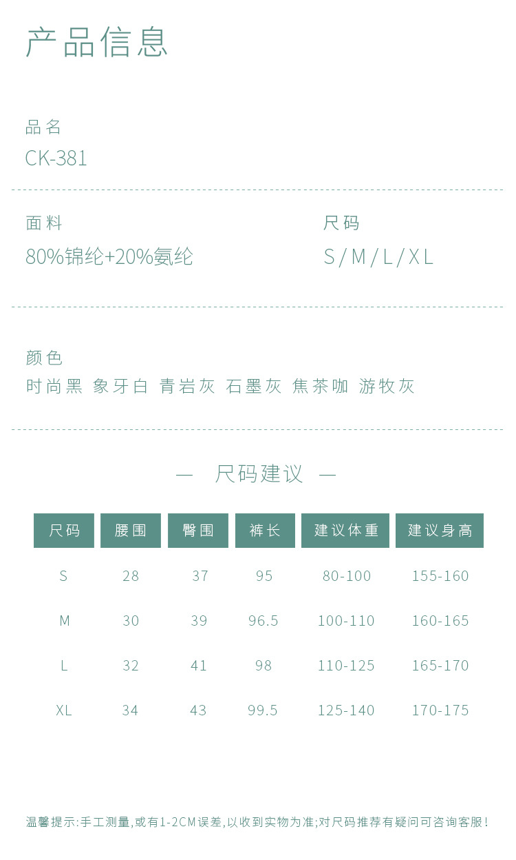 | Color | CK - 381 marfil blanco, CK - 381 ceniza nómada, CK - 381 ceniza de roca azul, CK - 381 café de té quemado, CK - 381 ceniza de tinta de piedra, CK - 381 negro de moda |