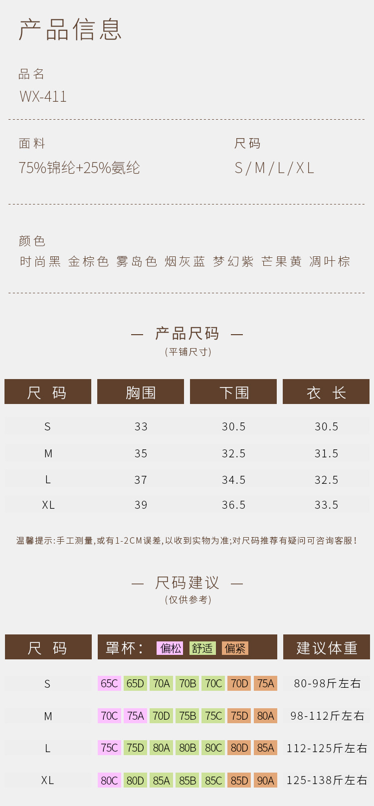 | Color | WX411 marrón dorado, WX411 negro de moda, WX411 isla de niebla, WX411 amarillo mango, WX411 púrpura de ensueño, WX411 azul de ceniza, WX411 marrón de hojas muertas |