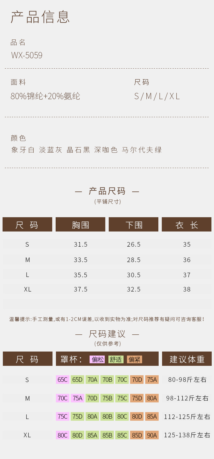 | Color | Wx5059 marfil blanco, wx5059 barita negro, wx5059 azul claro gris, wx5059 Maldivas verde, wx5059 café oscuro |