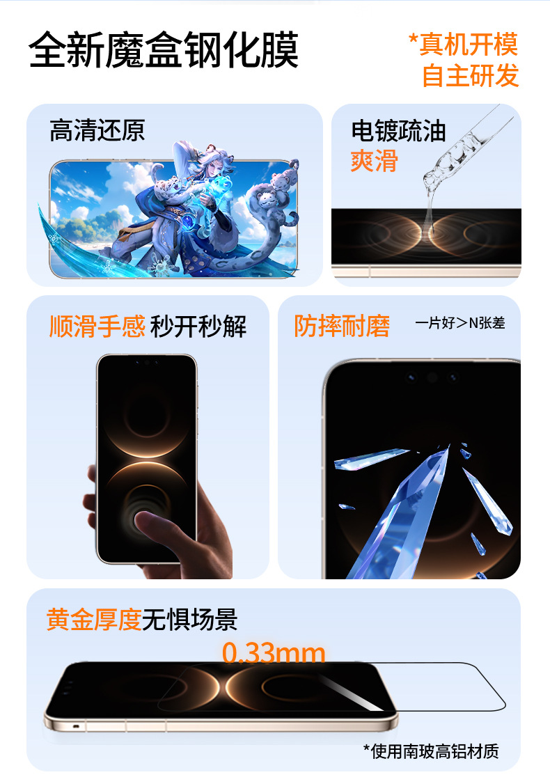 | Características de la película | Alta definición, anti - raspado, a prueba de explosiones, a prueba de polvo, anti - huellas dactilares, anti - caída, caja de segundos |