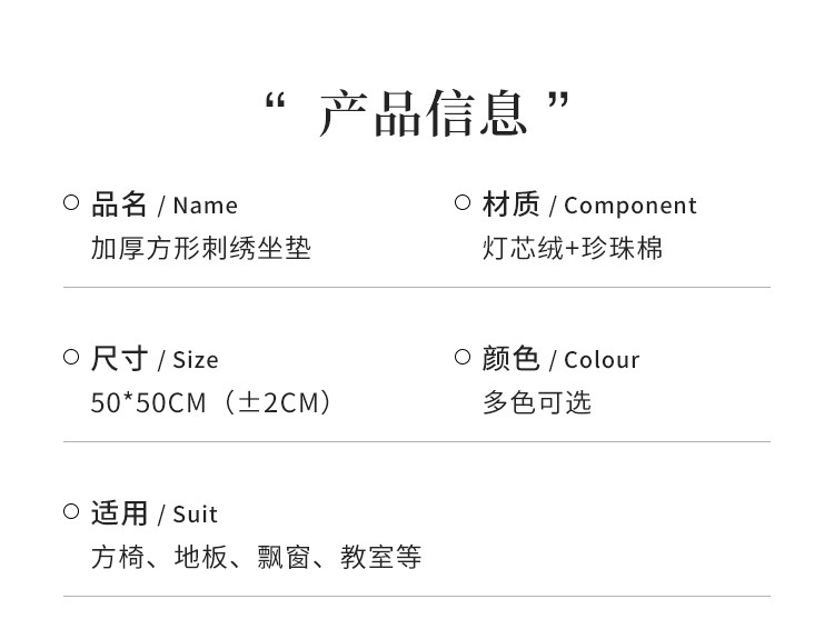 | Número de artículo | 50 * 50 cojín cuadrado grueso |