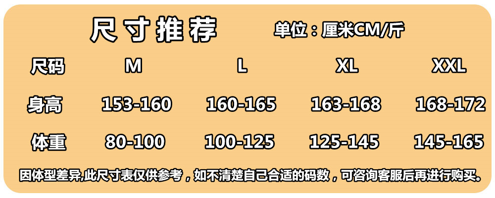 | Talla | 160(M),165(L),170(XL),175(XXL) |
