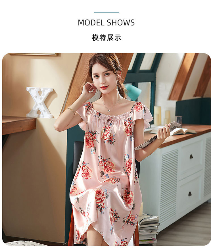 | Color | 504 # camisón Rose,504 # camisón amarillo hoja de arce,504 # nightdress pink rose flower,504 # camisón azul melocotón flor,504 # camisón Green Lotus |