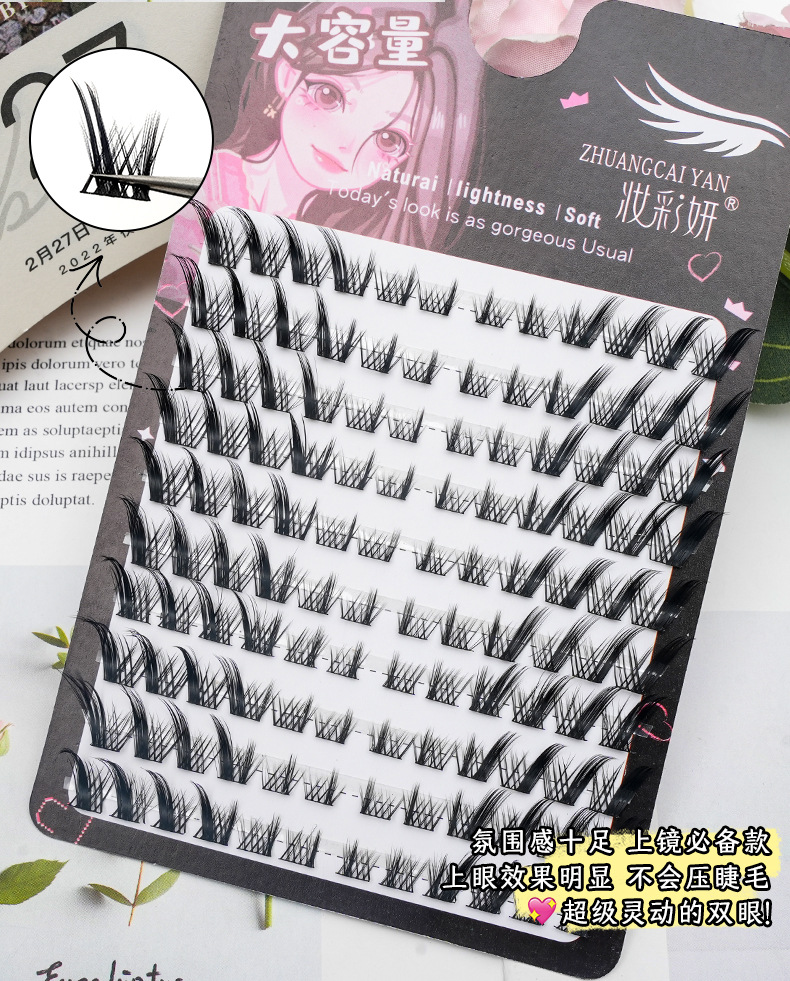 Serie de pestañas postizas transfronterizas Libro de pestañas de comercio exterior Pestañas postizas en inglés completas Pestañas postizas de gran capacidad, pelo segmentado de un solo racimo