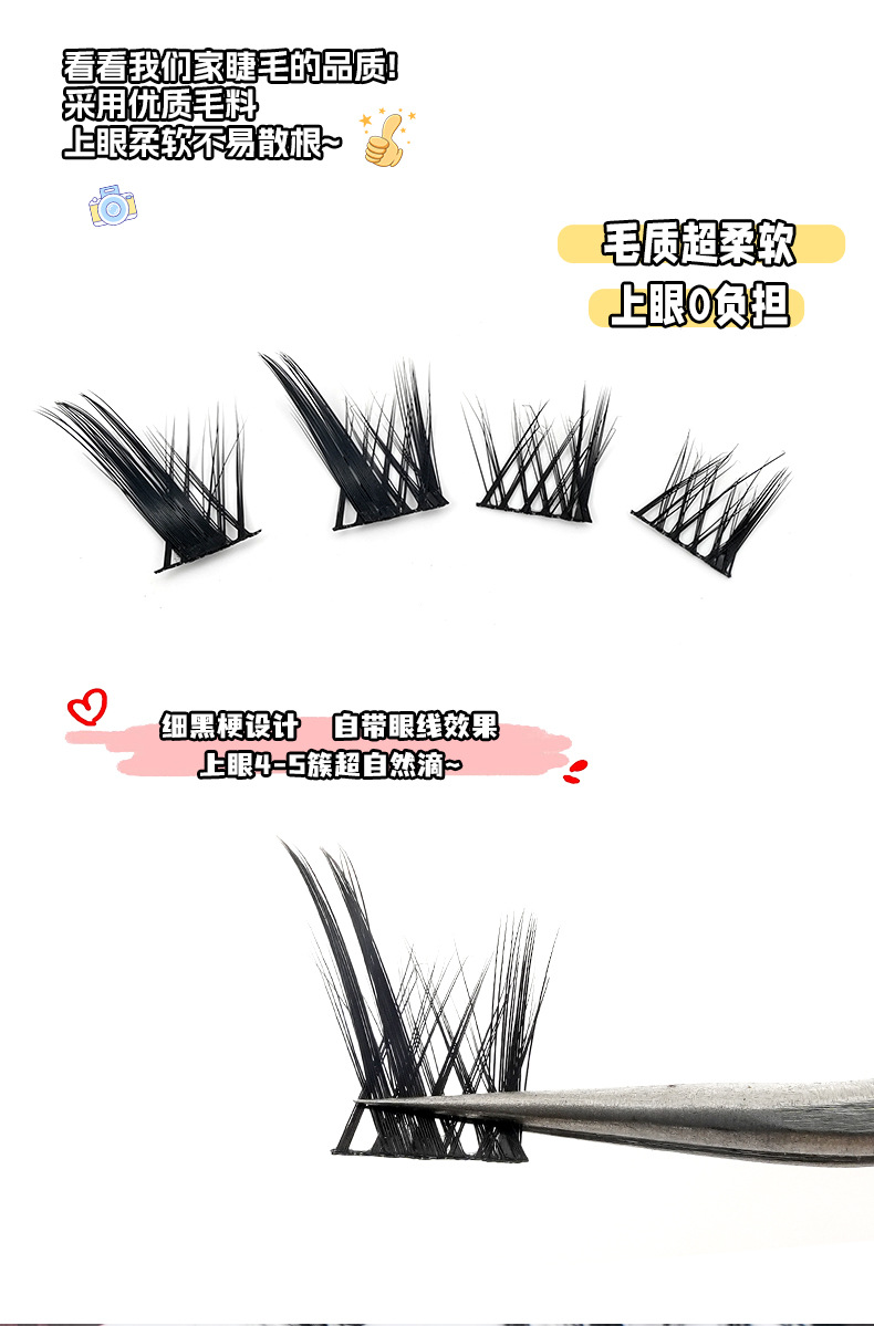 Explosivo de comercio exterior europeo y americano DIY segmentación de un solo racimo de pelos Pestañas postizas Pestañas gruesas y rizadas