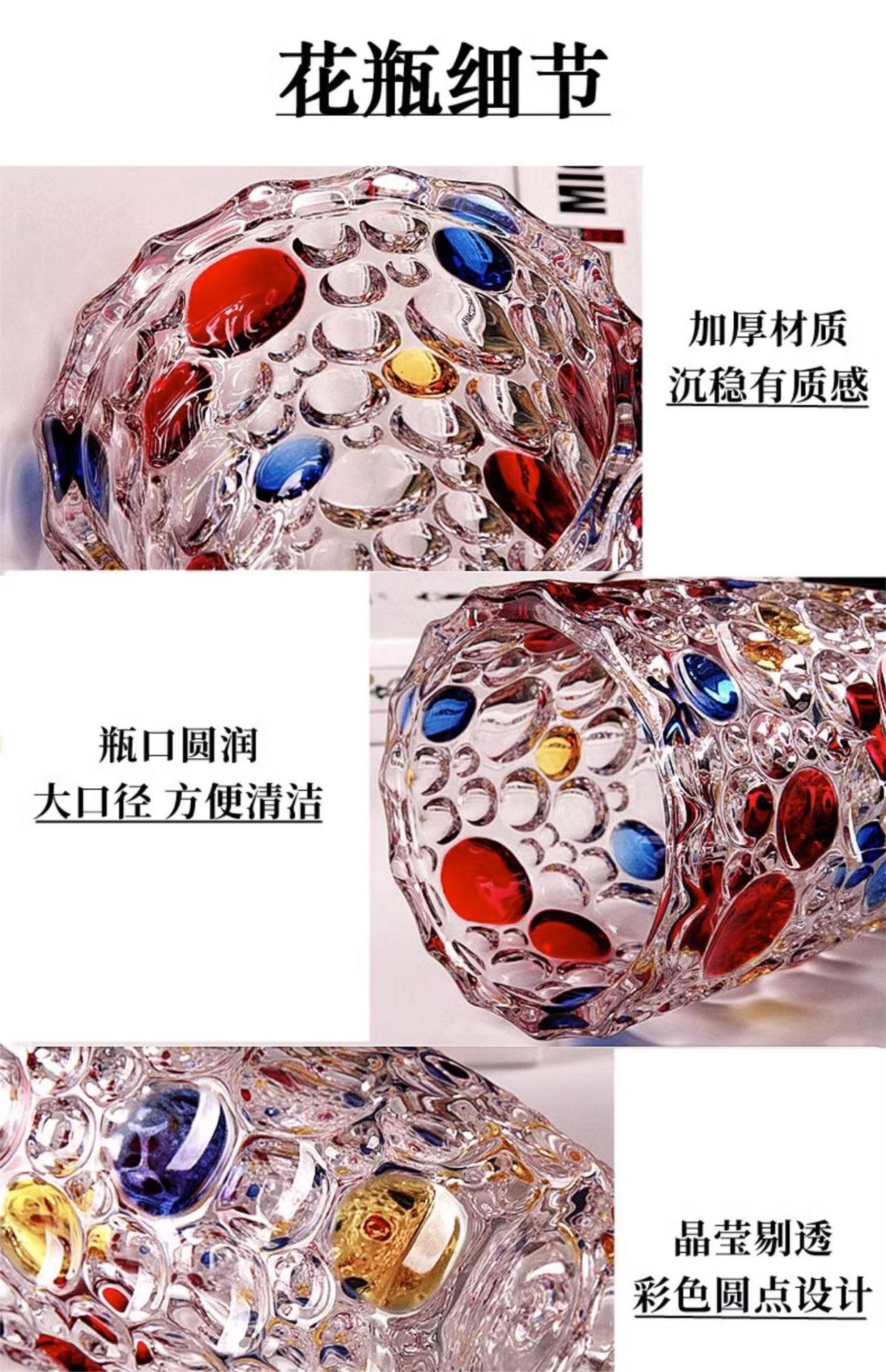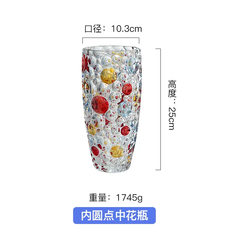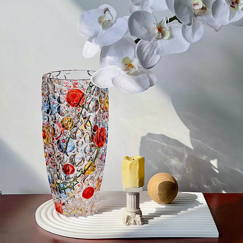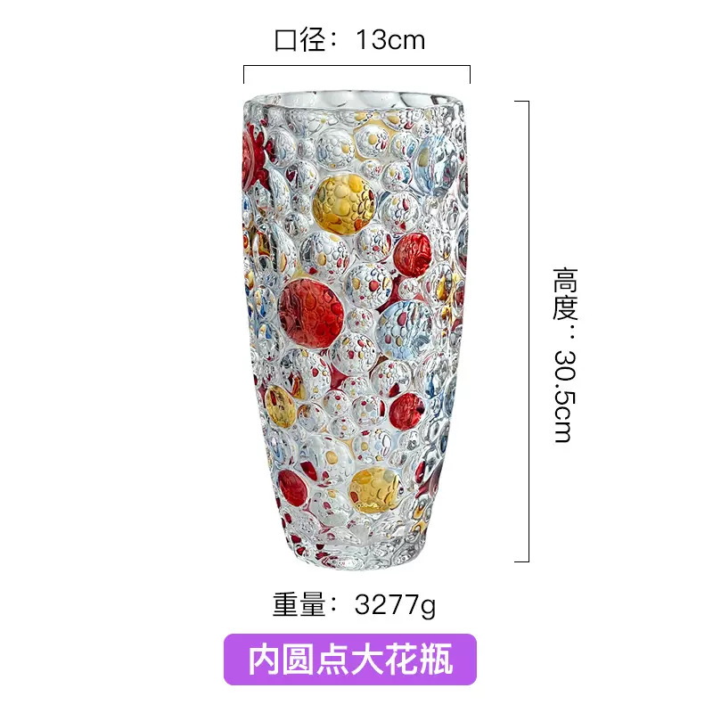 Jarrón de cristal transparente de alta gama con lunares coloridos pintados a mano, estilo escandinavo, decoración para el hogar y escritorio.