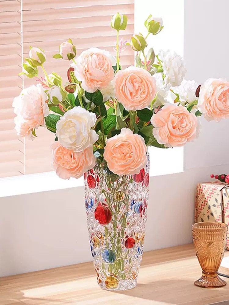Jarrón de Vidrio Transparente Escalonado Estilo Ins, Recipiente para Arreglos Florales, Adorno para Arreglos Florales, Artesanía Decorativa, Regalo Festivo, Flores Frescas