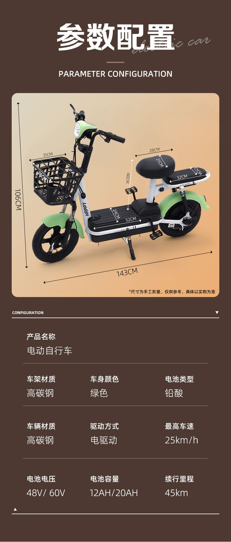 | Especificaciones | Vehículo eléctrico, vehículo eléctrico + batería Tianeng 48 - 12, vehículo eléctrico + batería de plomo - ácido |