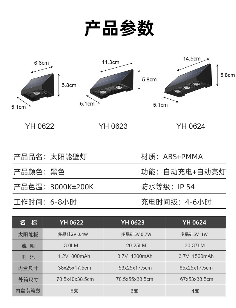 | Clasificación de especificaciones | YH0622-poli silicio 2V-0.4W, YH0623-poli silicio 5V-0.7W, YH0624-poli silicio 5V - 1W |