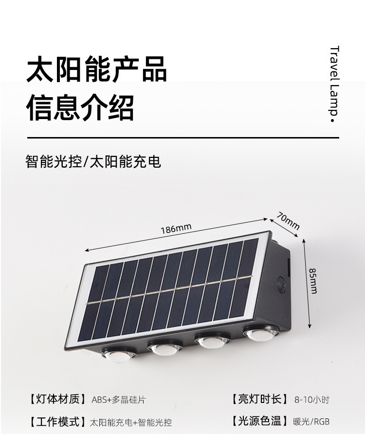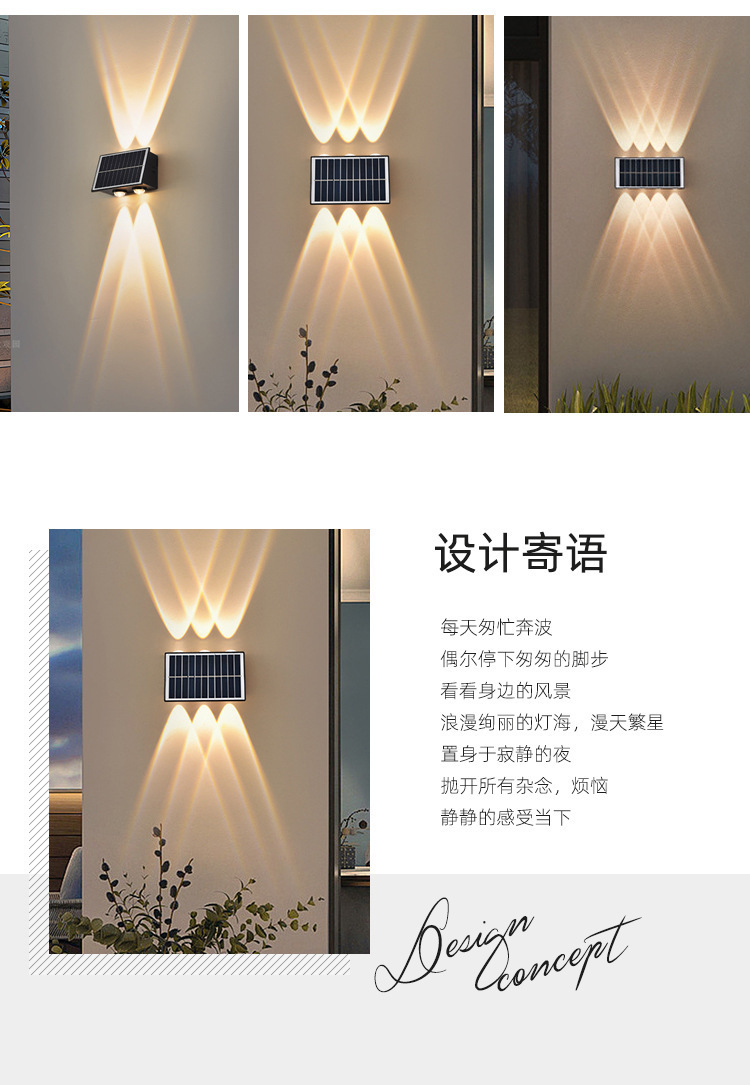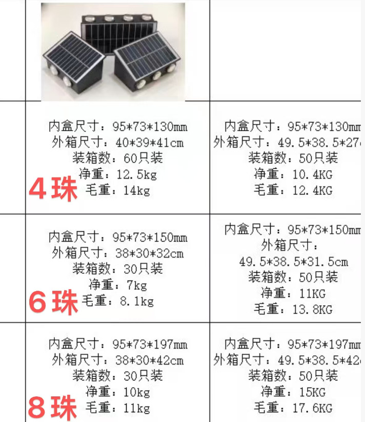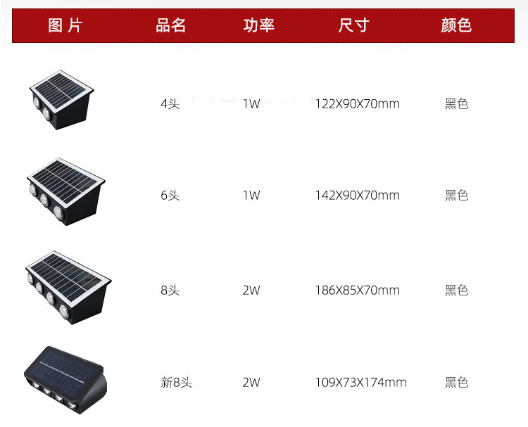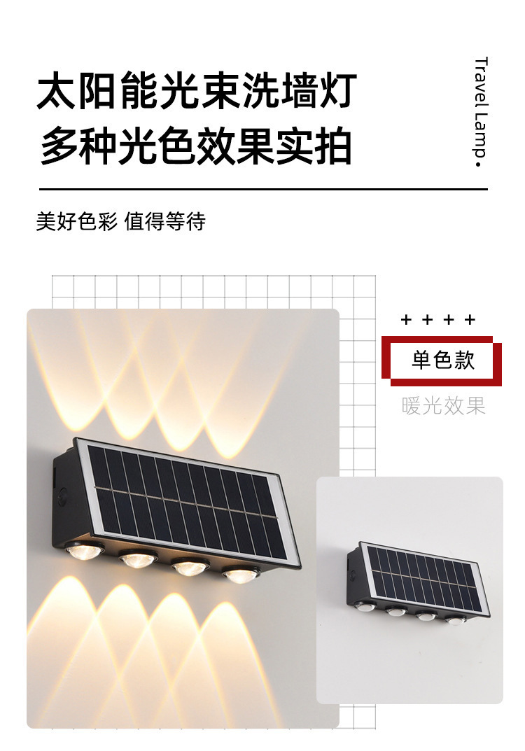 | Clasificación de especificaciones | Lámpara de pared solar-4 cuentas LED,Lámpara de pared solar-6 cuentas LED,Lámpara de pared solar-8 cuentas LED |