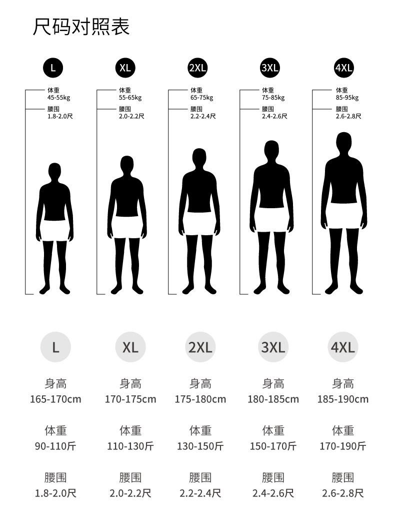 | Talla | L [adecuado a 90 - 110 kg], XL [adecuado a 100 - 130 kg], 2XL [adecuado a 130 - 150 kg], 3XL [adecuado a 150 - 170 kg], 4XL [adecuado a 170 - 190 kg] |