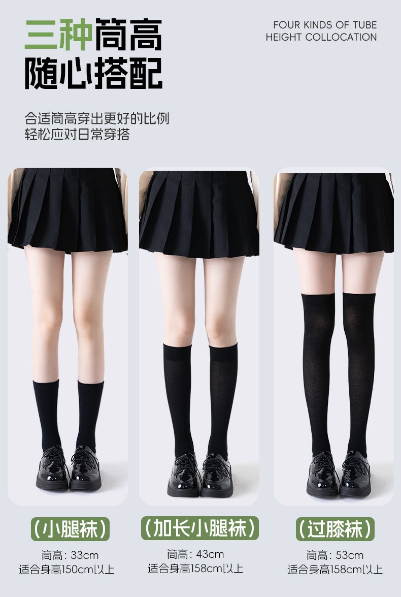 | Color | Medias negras - 30CM, medias de pantorrilla negras - 35CM, medias de rodilla negras - 56CM, medias blancas - 30CM, medias de pantorrilla blancas - 35CM, medias de rodilla blancas - 56CM |
