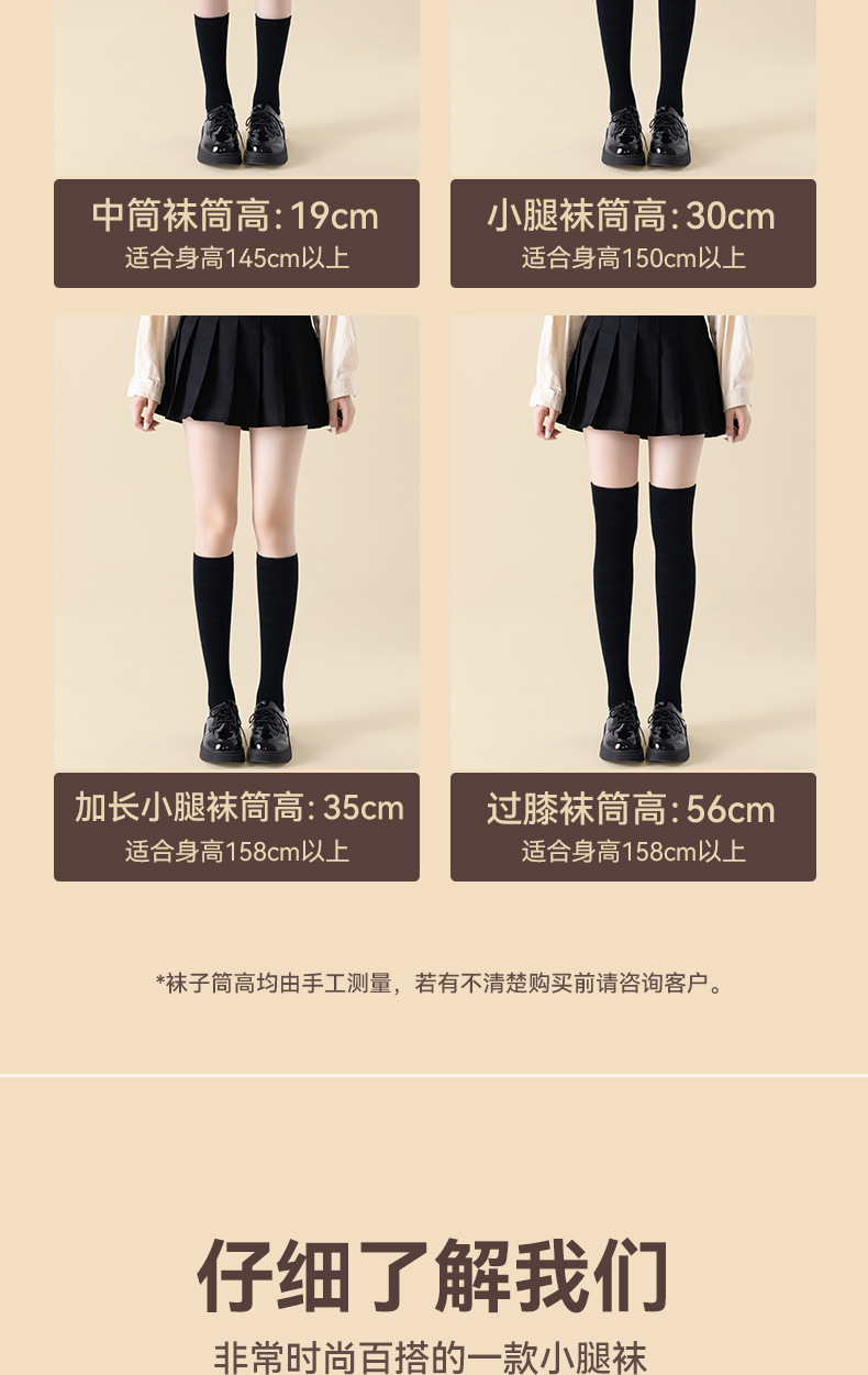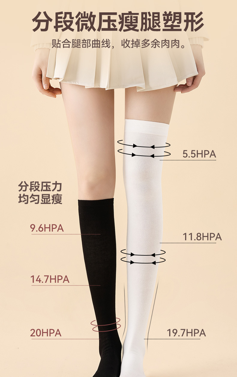 | Color | Blanco sobre la rodilla, pantorrilla blanca, barril blanco, negro sobre la rodilla, pantorrilla negra, barril negro |