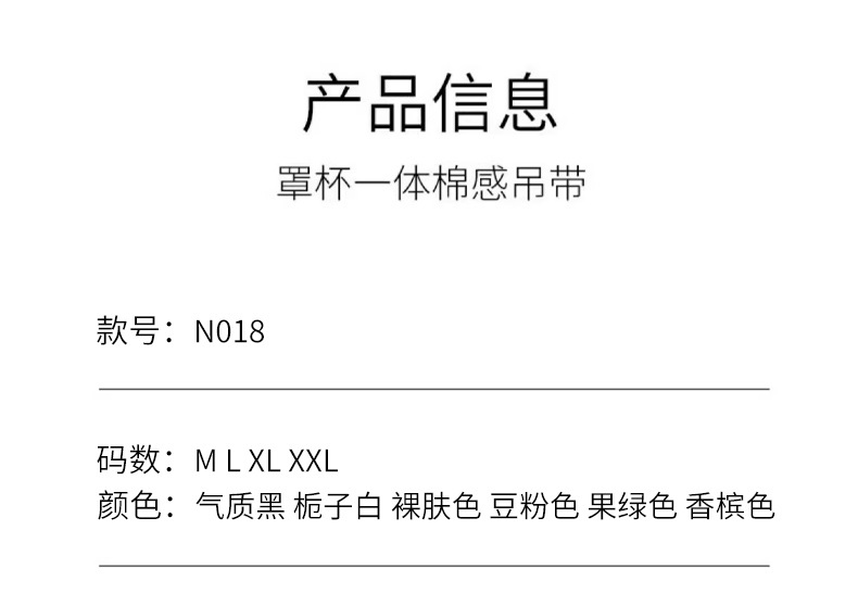 | Color | Hangar verde fruta, Hangar rosa frijoles, Hangar blanco gardenia, Hangar color desnudo, Hangar negro temperamento, Hangar champagne, U (correa de hombro fina) verde fruta, U (correa de hombro fina) rosa frijoles, U (correa de hombro fina) gardenia blanco, U (correa de hombro fina) color desnudo, U (correa de hombro fina) temperamento negro, U (correa de hombro fina) champagne |