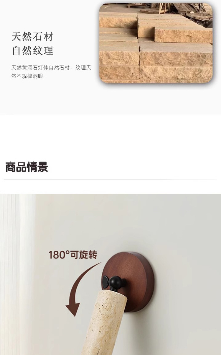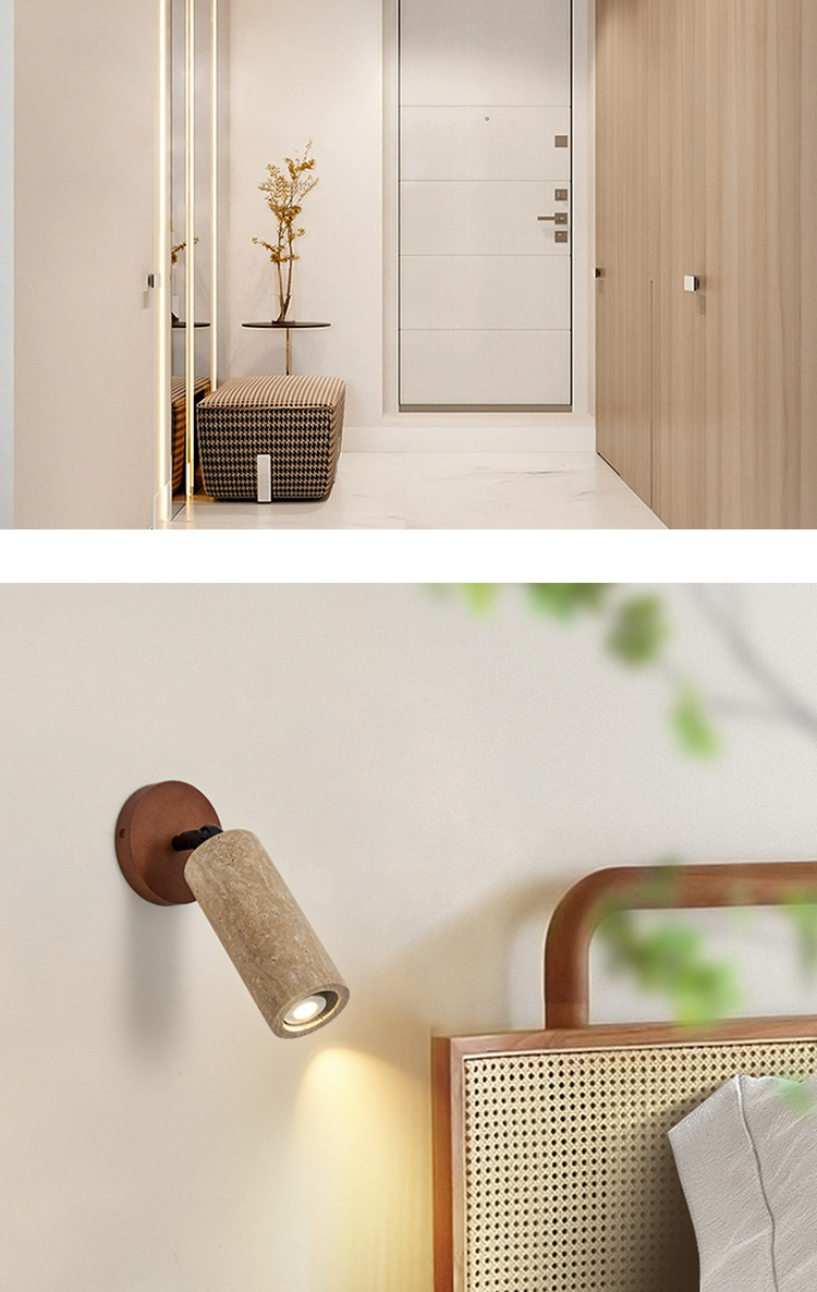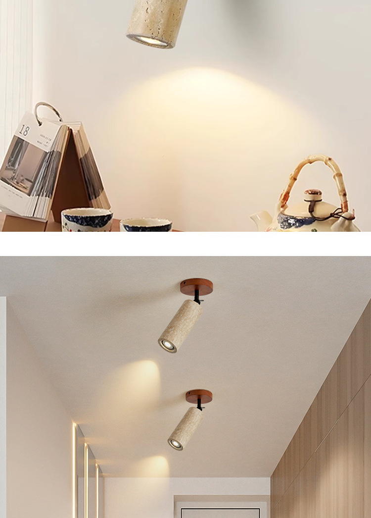 Spotlight sala de estar doméstica sin lámpara principal, viento silencioso, piedra de cueva amarilla, pasillo, lámpara de techo, lámpara de cabeza de cama