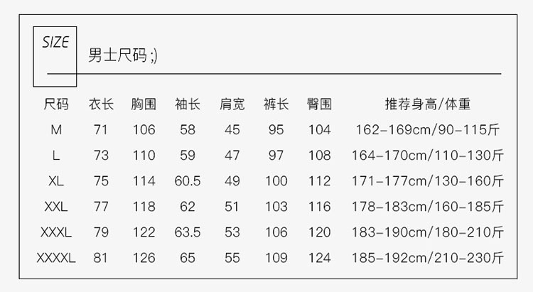 | Talla | M,L,XL,XXL,XXXL,4XL |