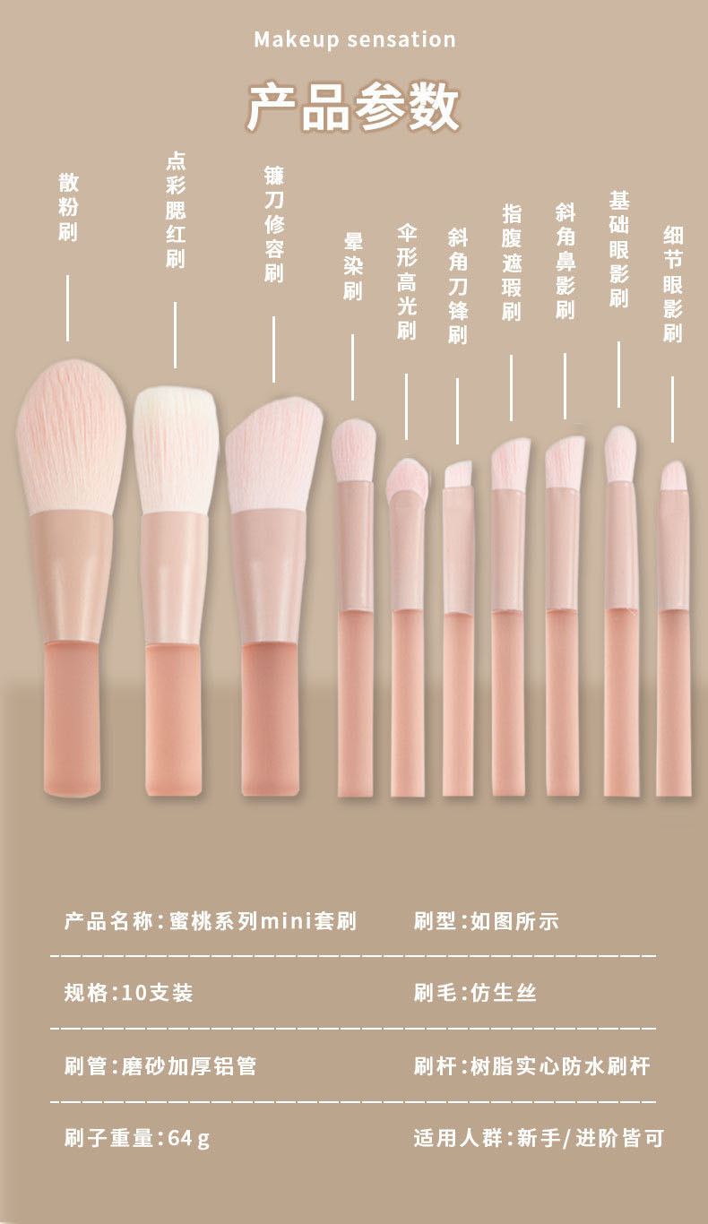 | Artículo No. | 10 PCs mini melocotón medio azúcar maquillaje cepillo traje |