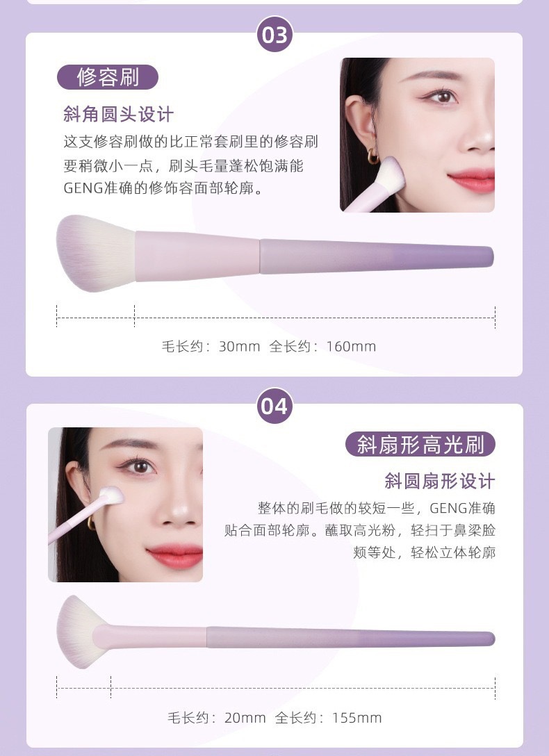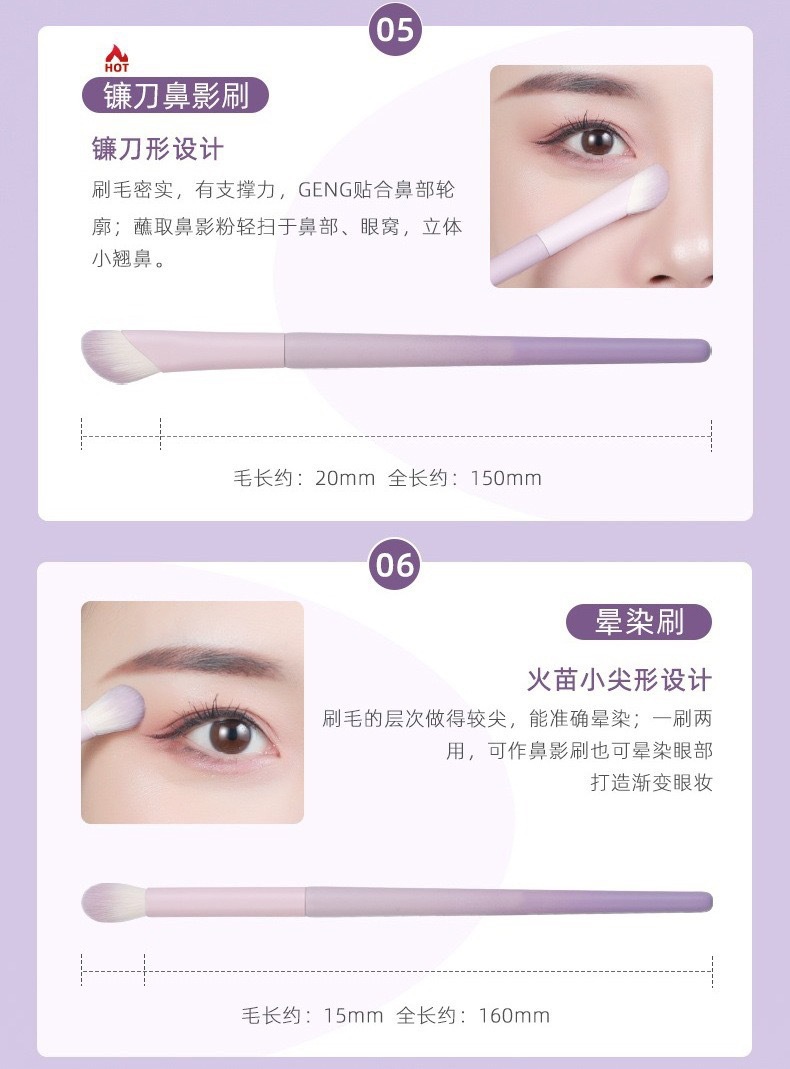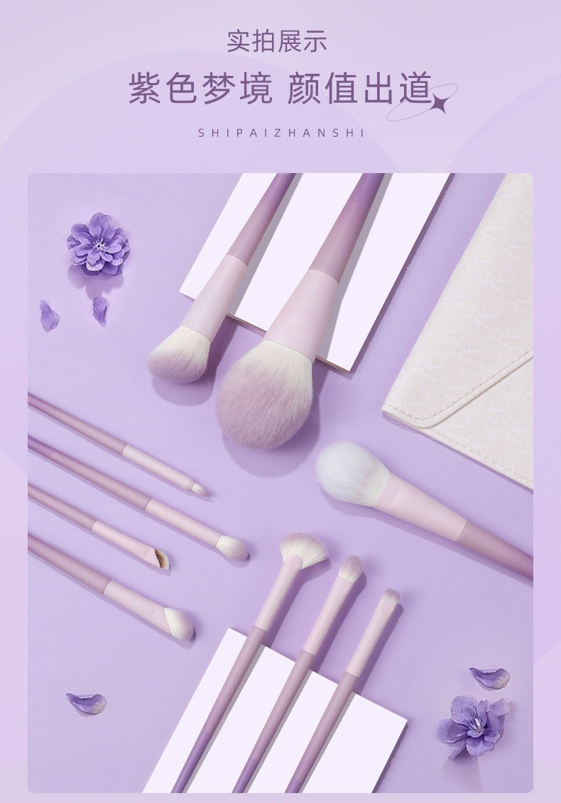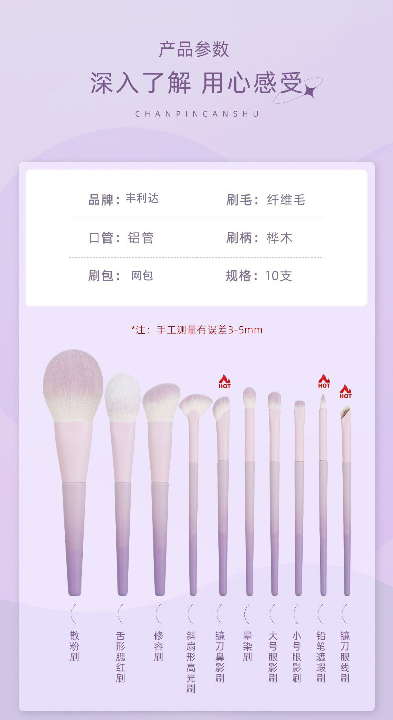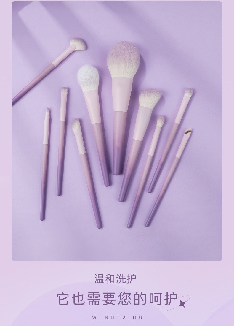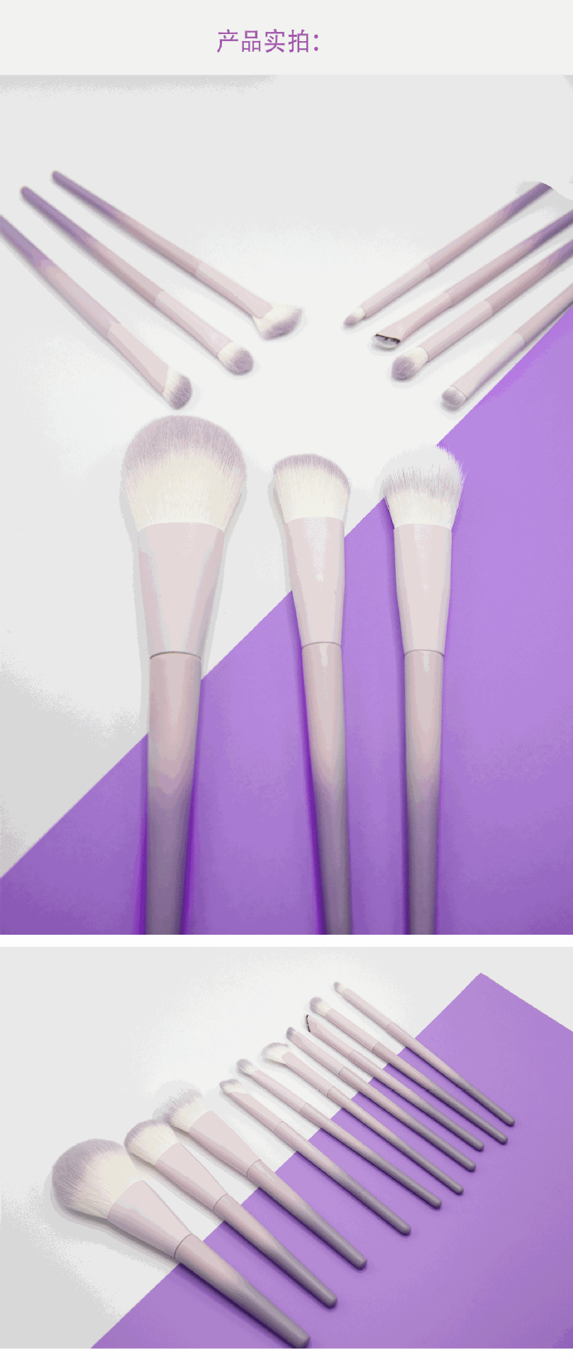 Fenglida 10 sets de cepillo de maquillaje de gradiente púrpura suave no pegue la cara polvo de sombra de ojos blush cepillo al por mayor