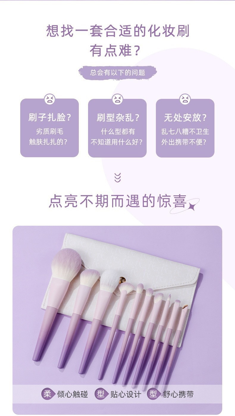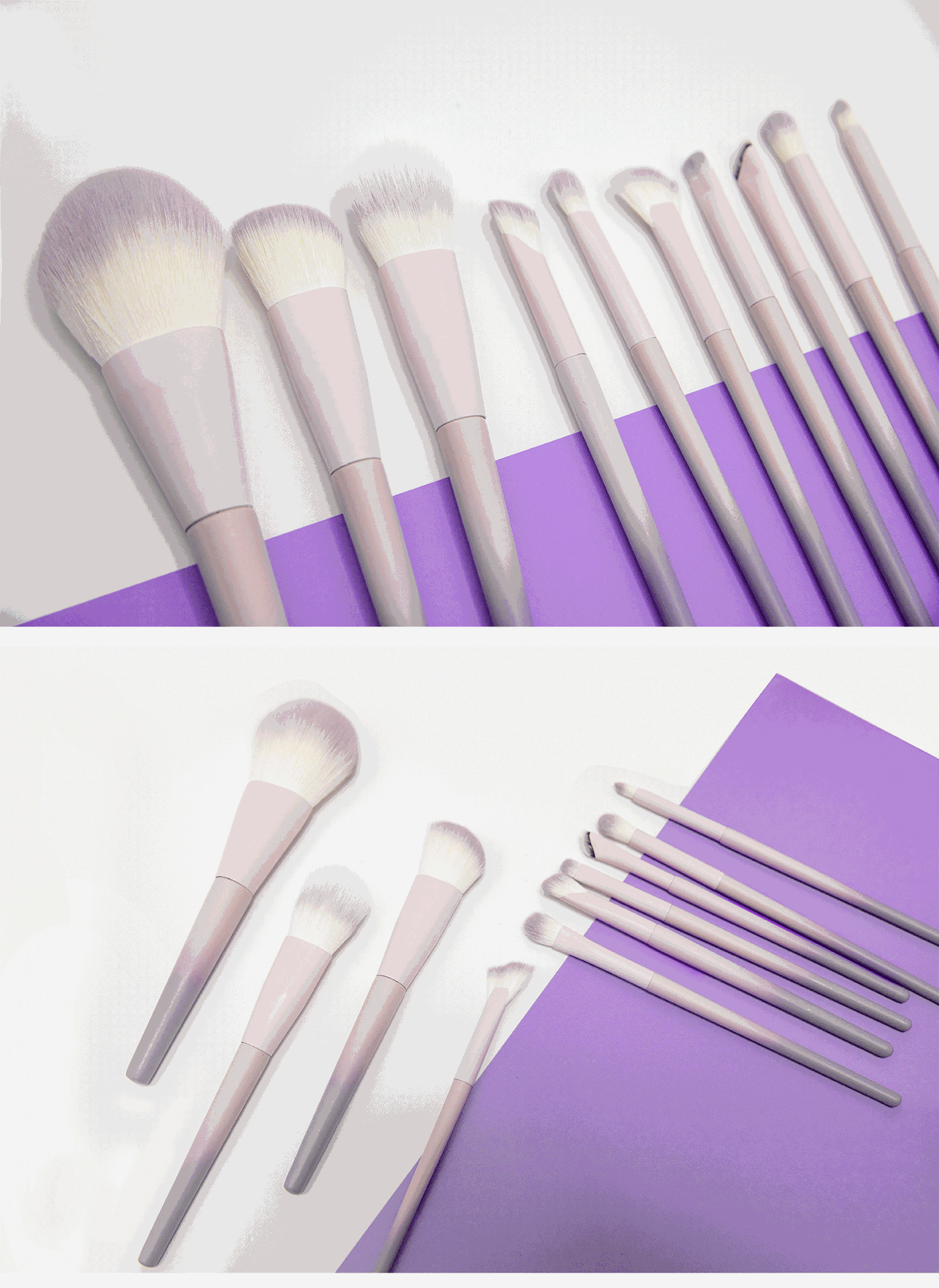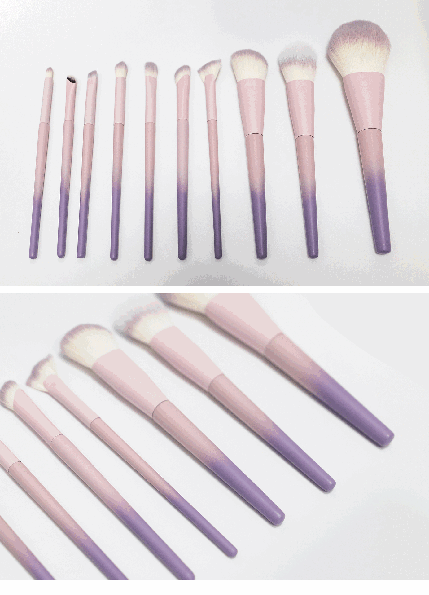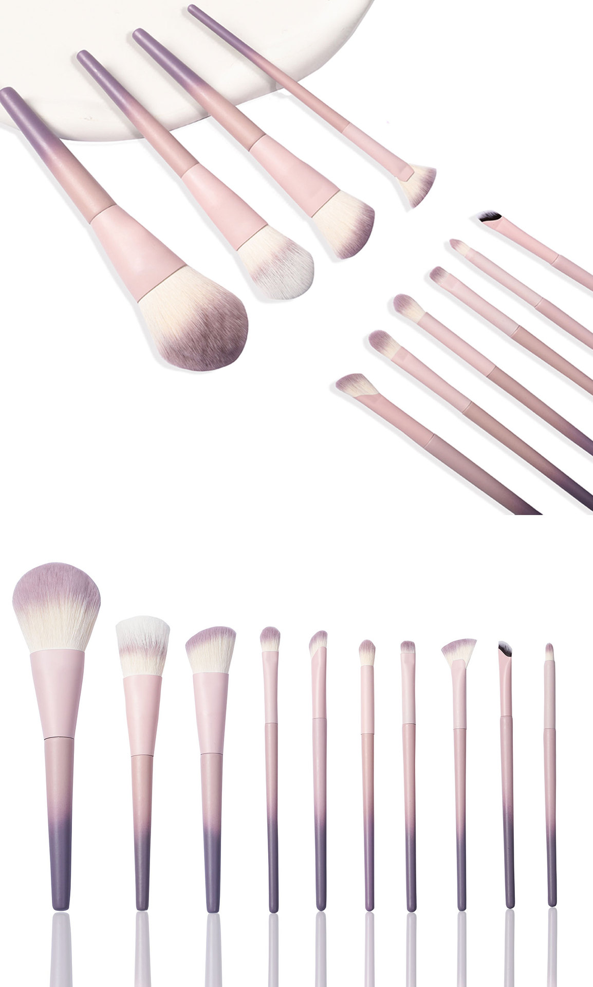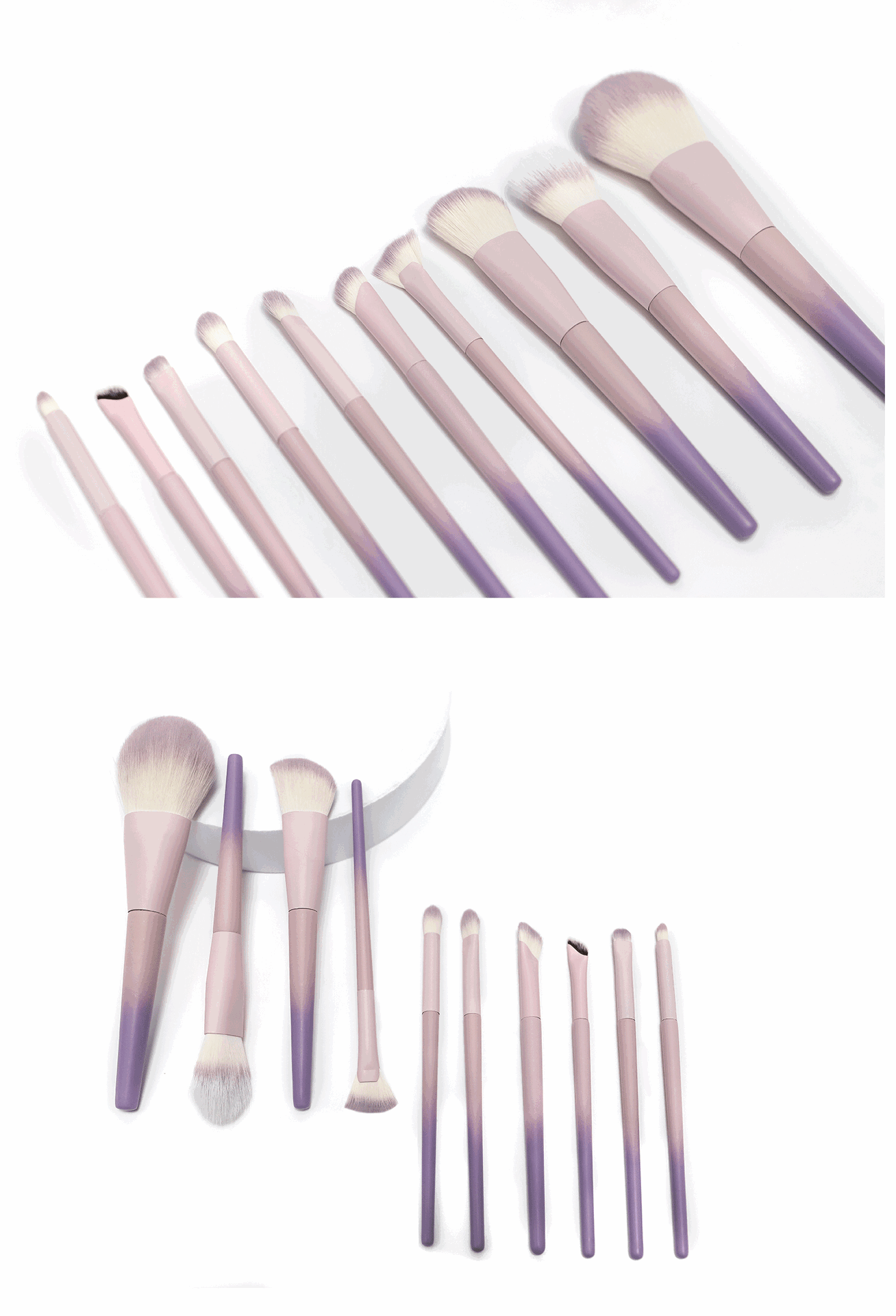 10 cepillo de maquillaje de gradiente púrpura, bolsa de cepillo