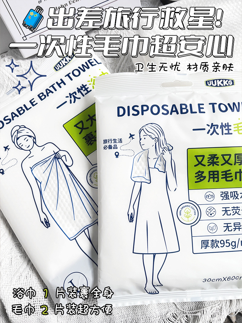 | Especificaciones | Toalla de baño desechable (paquete de una pieza) 70 * 140 cm, toalla desechable (paquete de dos piezas) 30 * 60 cm |