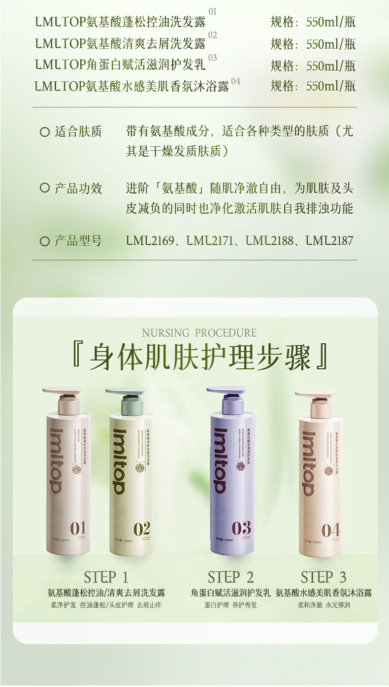 | Especificaciones | Upgrade 2.0 Amino Acid Oil Control Loose Shampoo 550ml, Upgrade 2.0 Amino Acid Refrescante Shampoo Anticampiga 550ml, Upgrade 2.0 Keratina Revitalizing Hydrating Lotion 550ml, Upgrade 2.0 Amino Acid Water Beauty Aroma Shower 550ml. |