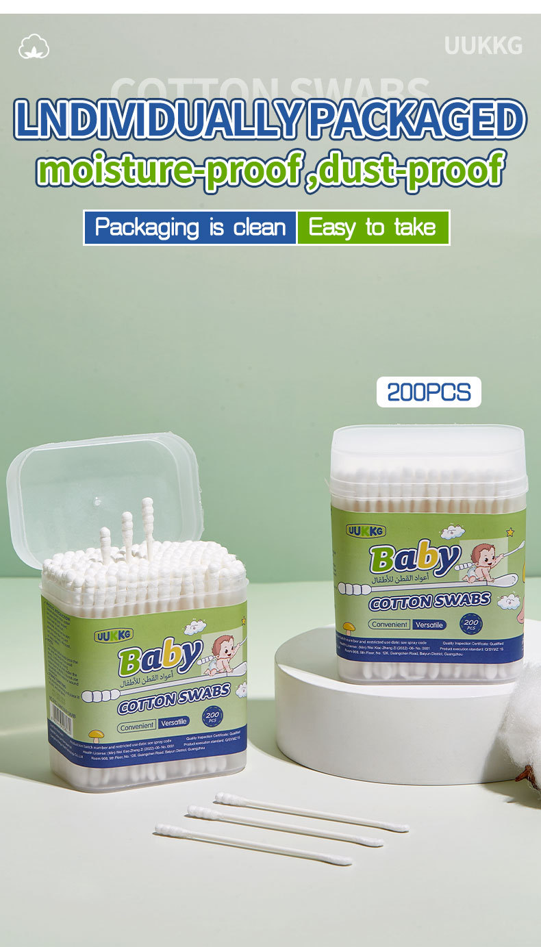 | Especificaciones | 200 tampones de algodón para bebés SY812 (envasado en inglés solo para exportación, no se venden en el país) |