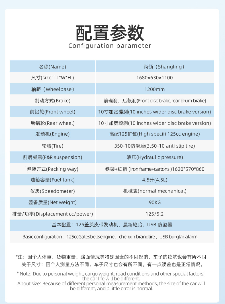 | Tamaño exterior del vehículo | 1680×630×1100 |