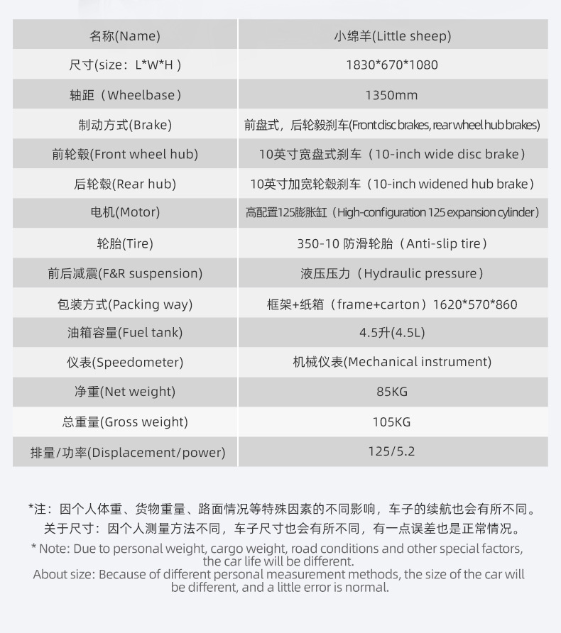 | Tamaño exterior del vehículo | 1830x670x1080(mm)(mm) |
