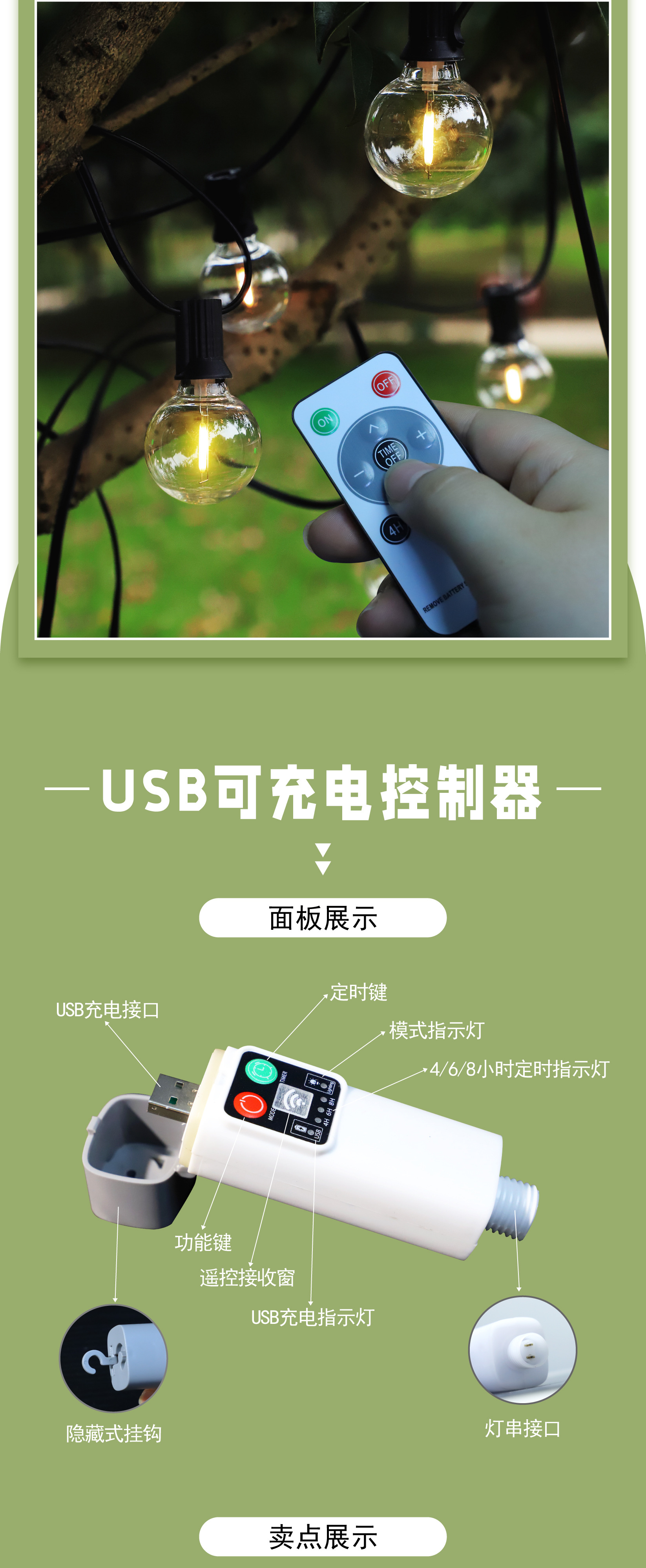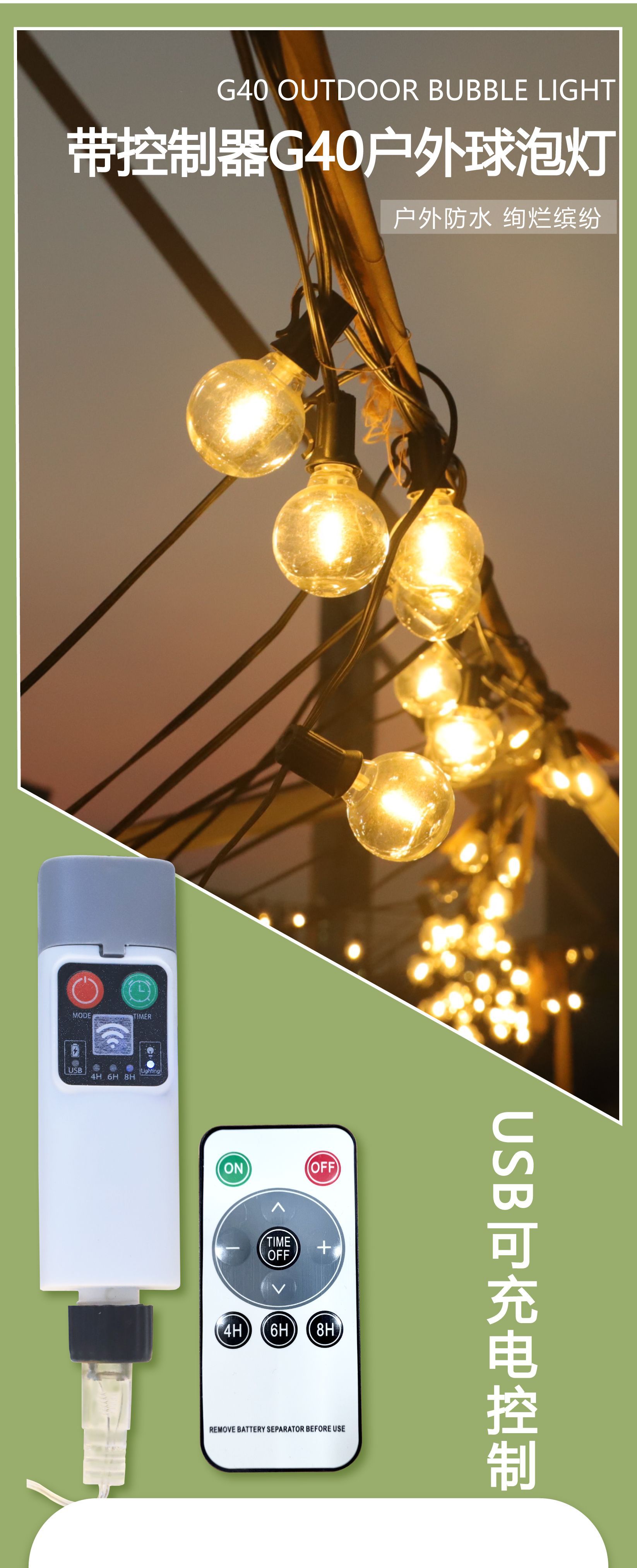 | Especificaciones | Control remoto del controlador de carga de cadena de bombones G40,Cadena de bombillas de alambre de cobre + controlador de carga + control remoto |
