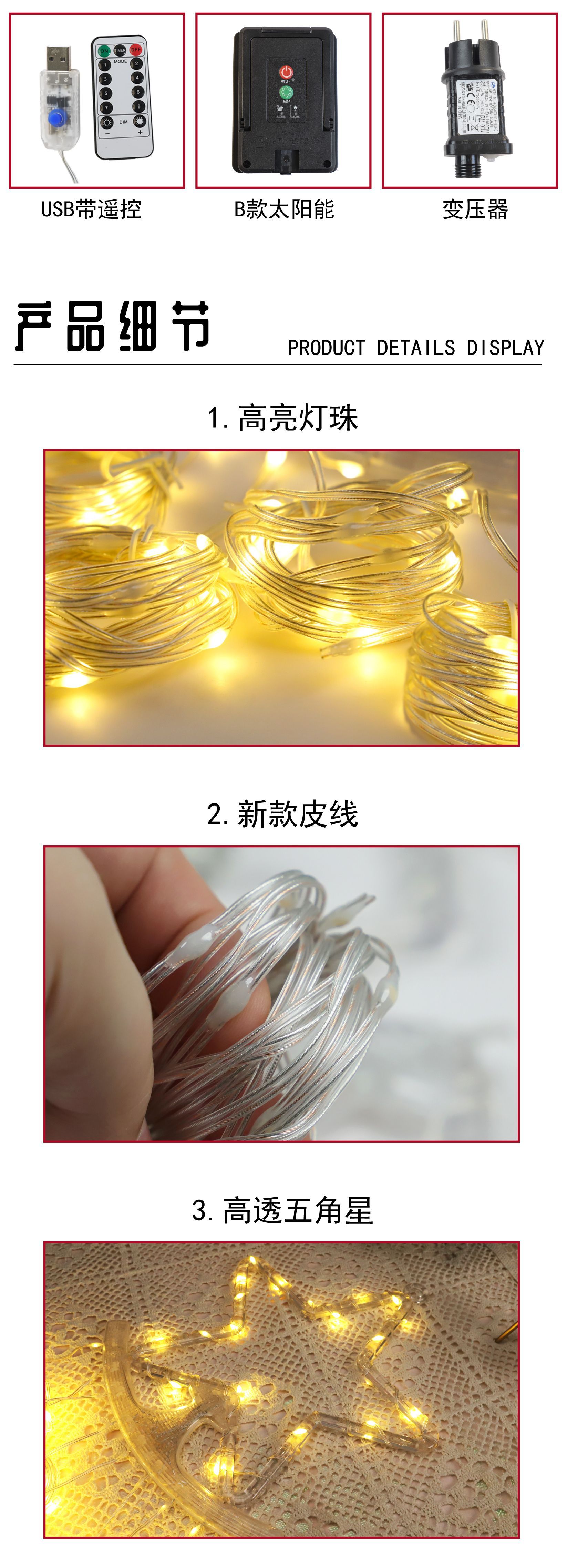| Especificaciones | Ocho funciones USB + control remoto, larga duración B energía solar + control remoto, caja de batería impermeable + control remoto, transformador de ocho funciones |